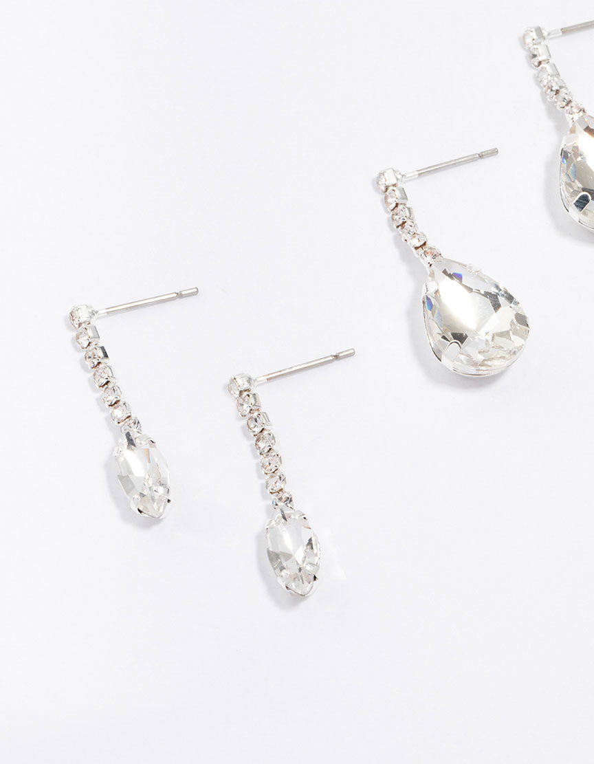 Silver Diamante Drop Earrings 3-Pack