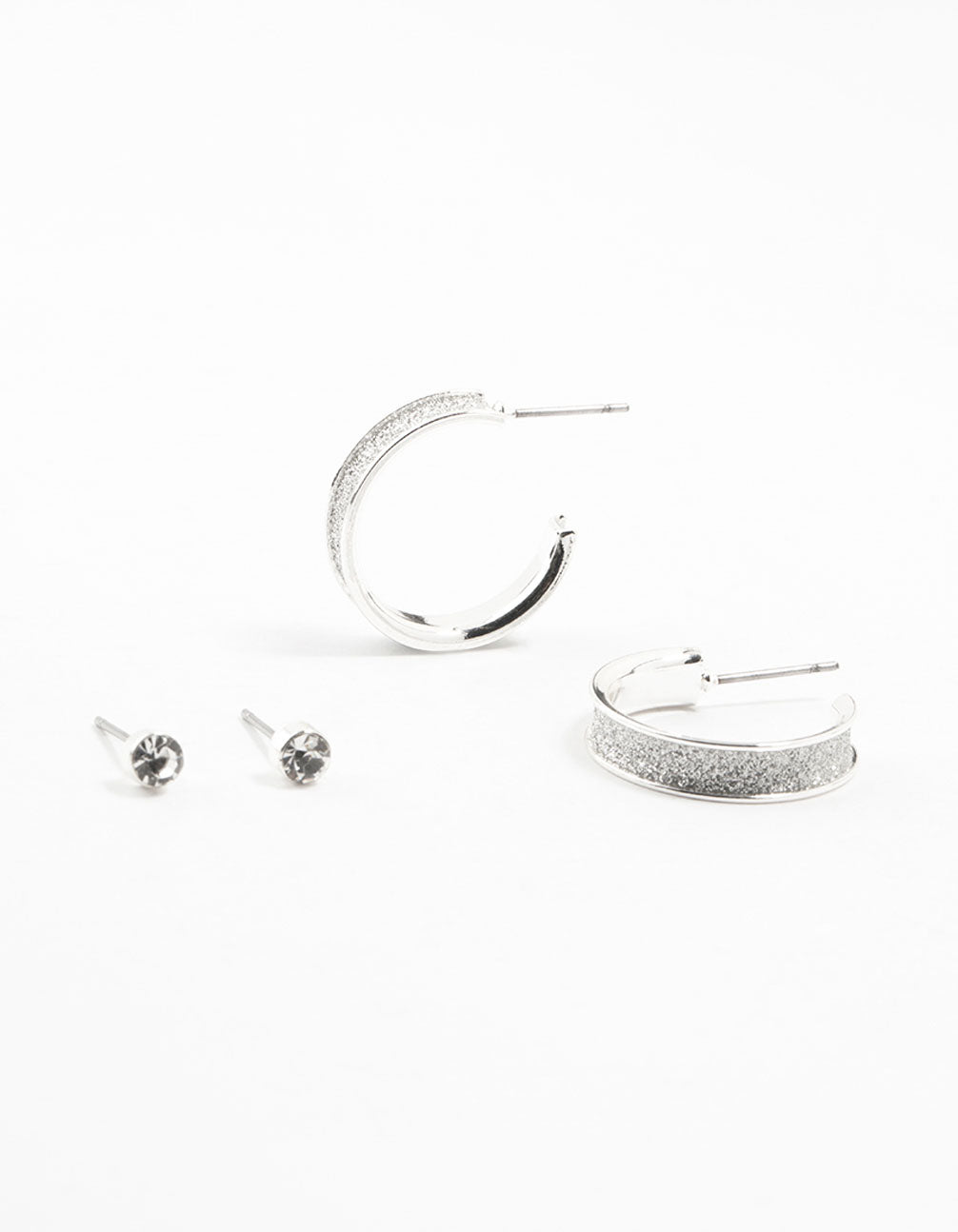 Silver Glitter Hoop & Stud Earrings 2-Pack