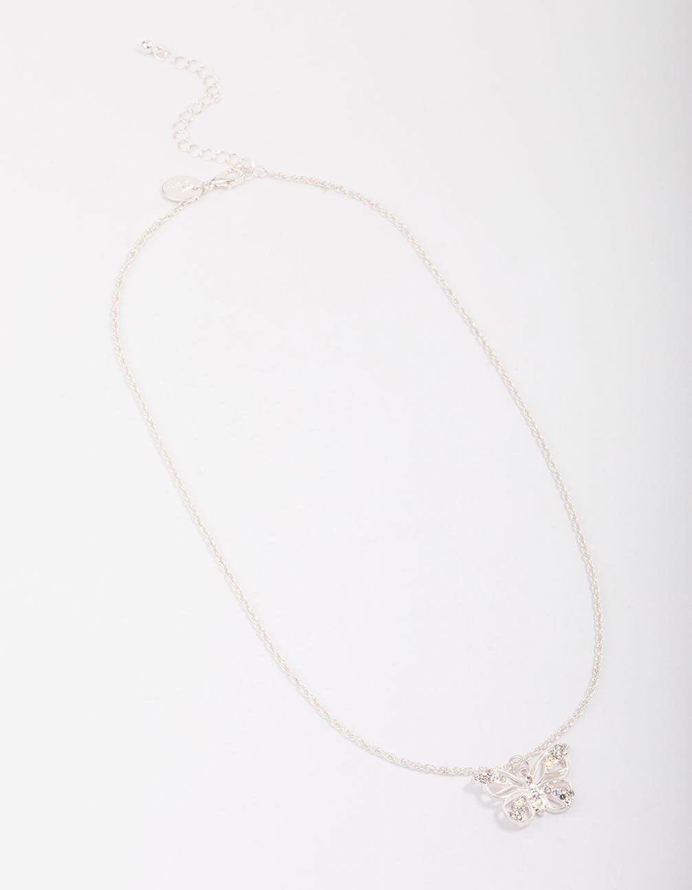 This simple chain necklace features a large, diamante-encrusted butterfly for a Y2K-inspired finish.