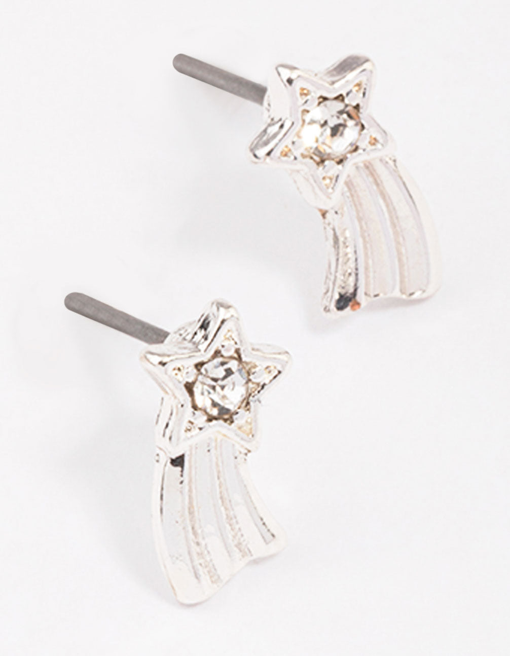 Add a hint of sparkle to your ear stack with these simple, silver stud earrings. These unique studs feature mini star motifs, adorned with stands of diamantes to mimic a shining or falling star.