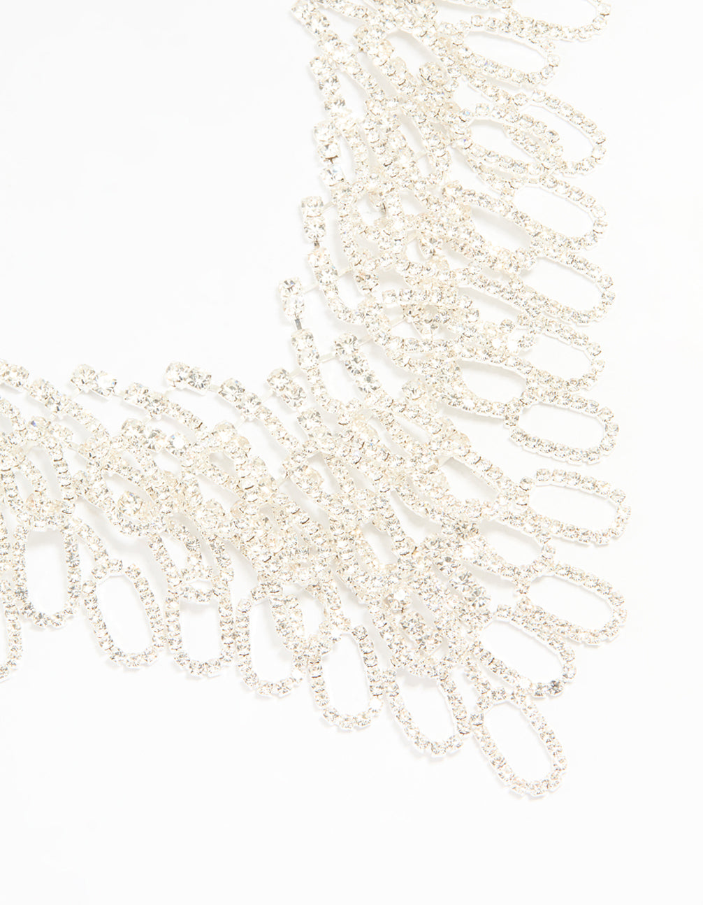 Make a bold entrance with this Silver Diamante Statement V-Necklace. Designed for the lovers of glamour, this silver-tone necklace combines sleek sophistication with sparkling diamante accents in a striking V-shape. Perfect for glamorous events, from weddings to black-tie soirées, this statement necklace effortlessly brings Met Gala-inspired style to your outfit. Pair it with a plunging neckline to highlight its elegant shape, or layer it over a chic blazer for a modern edge. Whether you call it jewellery, a neckpiece, or simply your new go-to accessory, this diamante necklace promises to dazzle and delight every time you wear it! Pieces from our Limited Edition collection are here to make you the center of attention—they're all Met Gala-inspired and ready for your next event. Available for a limited time only.