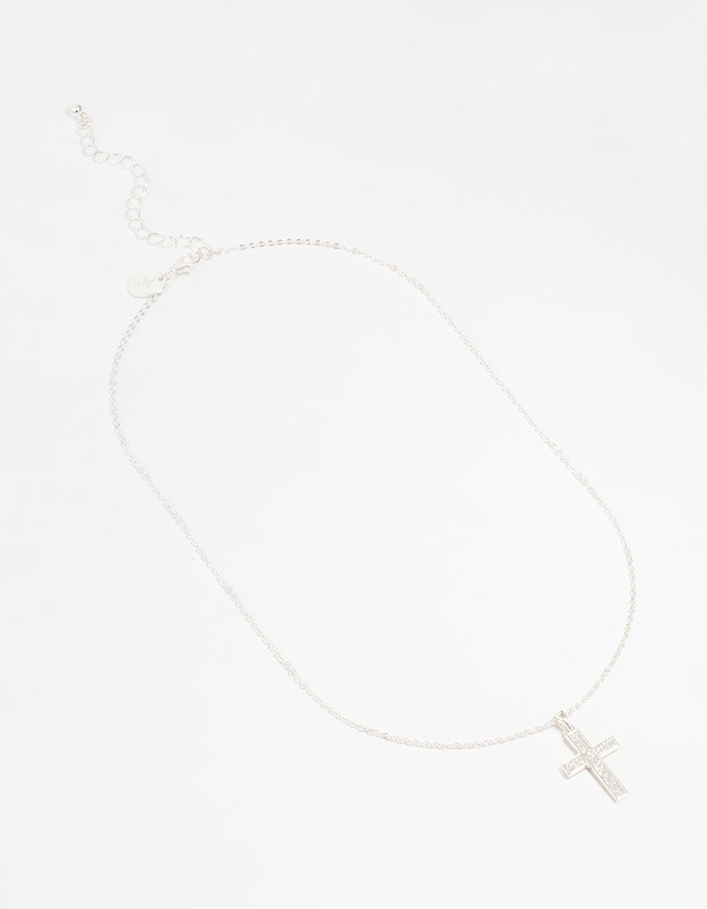 Meet the Silver Glitter Cross Pendant Necklace! This stunning piece features a glittering cross design with a fine silver toned chain for a luxurious finish.