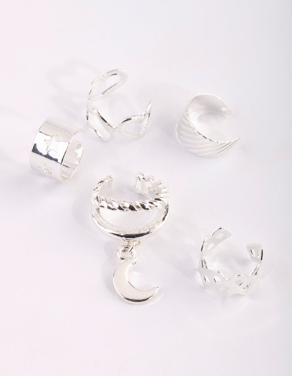 I've got a cuff on you! This cute ear cuff pack is perfect for a lovely layered look. It includes heart and moon motifs. Layer it with other earrings for maximum impact!