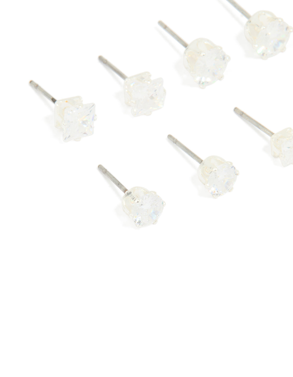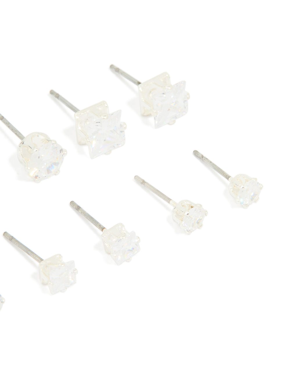 Silver Multi-Shape Cubic Zirconia Stud Earrings 6-Pack
