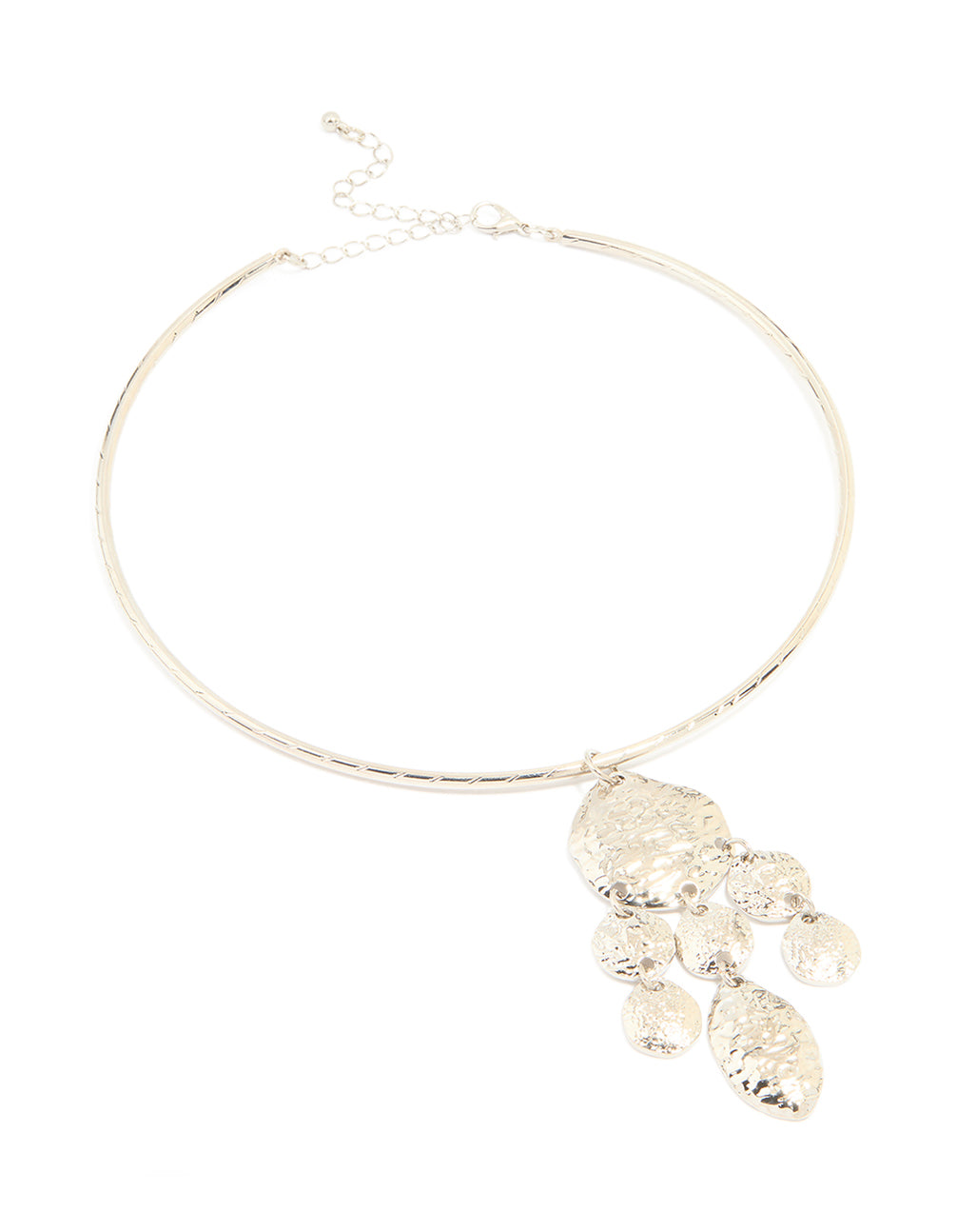 Add a modern twist to your jewellery collection with this Silver Organic Circle Pendant Torque Necklace. This sleek torque necklace features a unique hammered circle pendant design, perfect for creating a minimalist yet striking look. Crafted in silver, its organic shape adds a contemporary edge that's ideal for dressing up or down. Wear it to brunch with a flowy blouse or pair it with a crisp blazer for work – it's versatile enough to complement any outfit. Whether you're layering it with other necklaces or letting it shine solo, this torque-style piece is a must-have for anyone who loves clean, elegant jewellery with a fashionable flair. Perfect for elevating everyday ensembles or adding a subtle statement to evening wear!