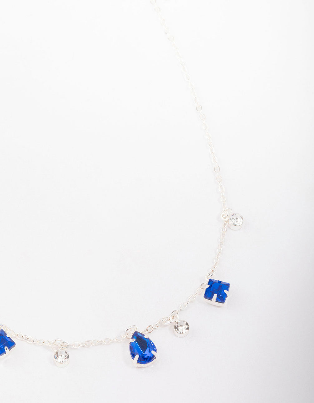 Silver Pear Round Square Stone Necklace Silver Pear Round Square Stone Necklace