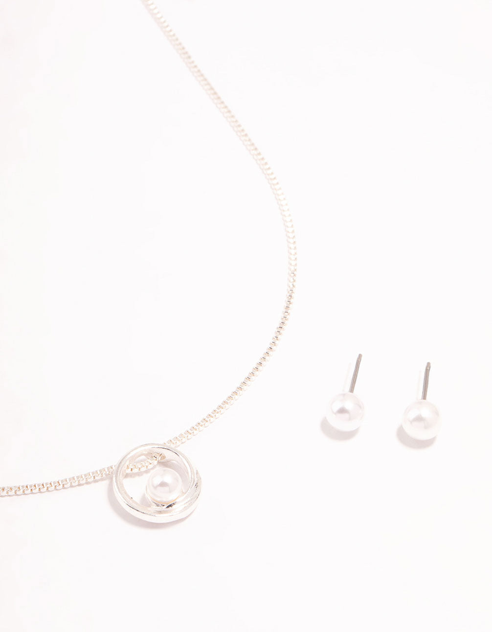 Surprise someone special with this elegant gift set featuring a silver pearl necklace and chic pearl stud earrings. The lustrous pearls add sophistication, making this versatile duo perfect for any occasion.