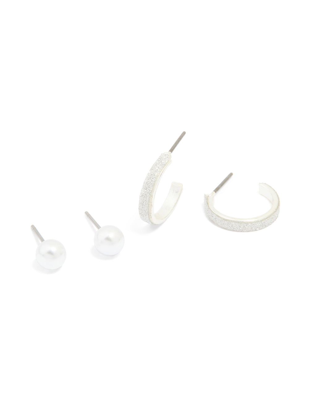 Silver Pearl Studs & Glitter Hoop Earrings 2-Pack