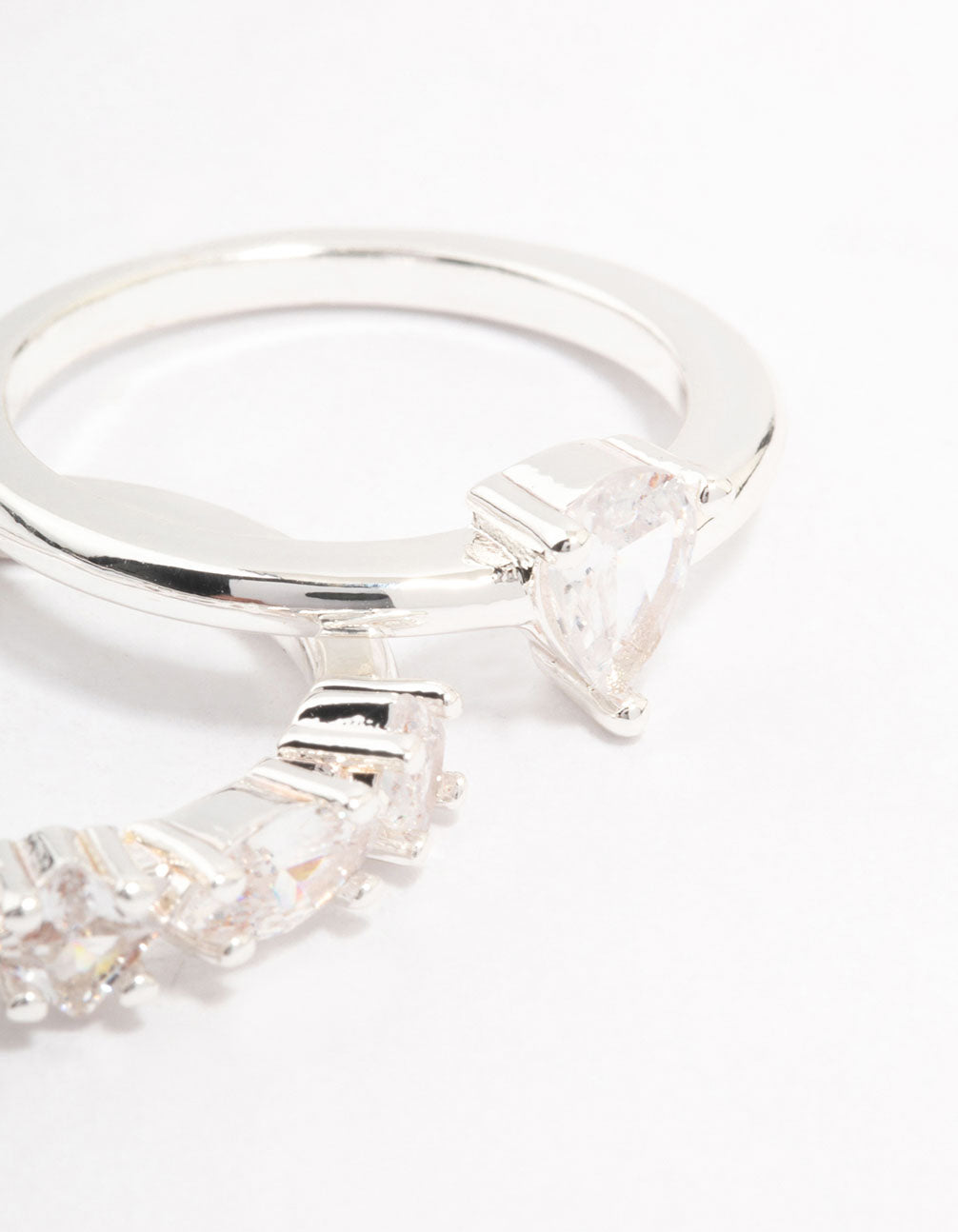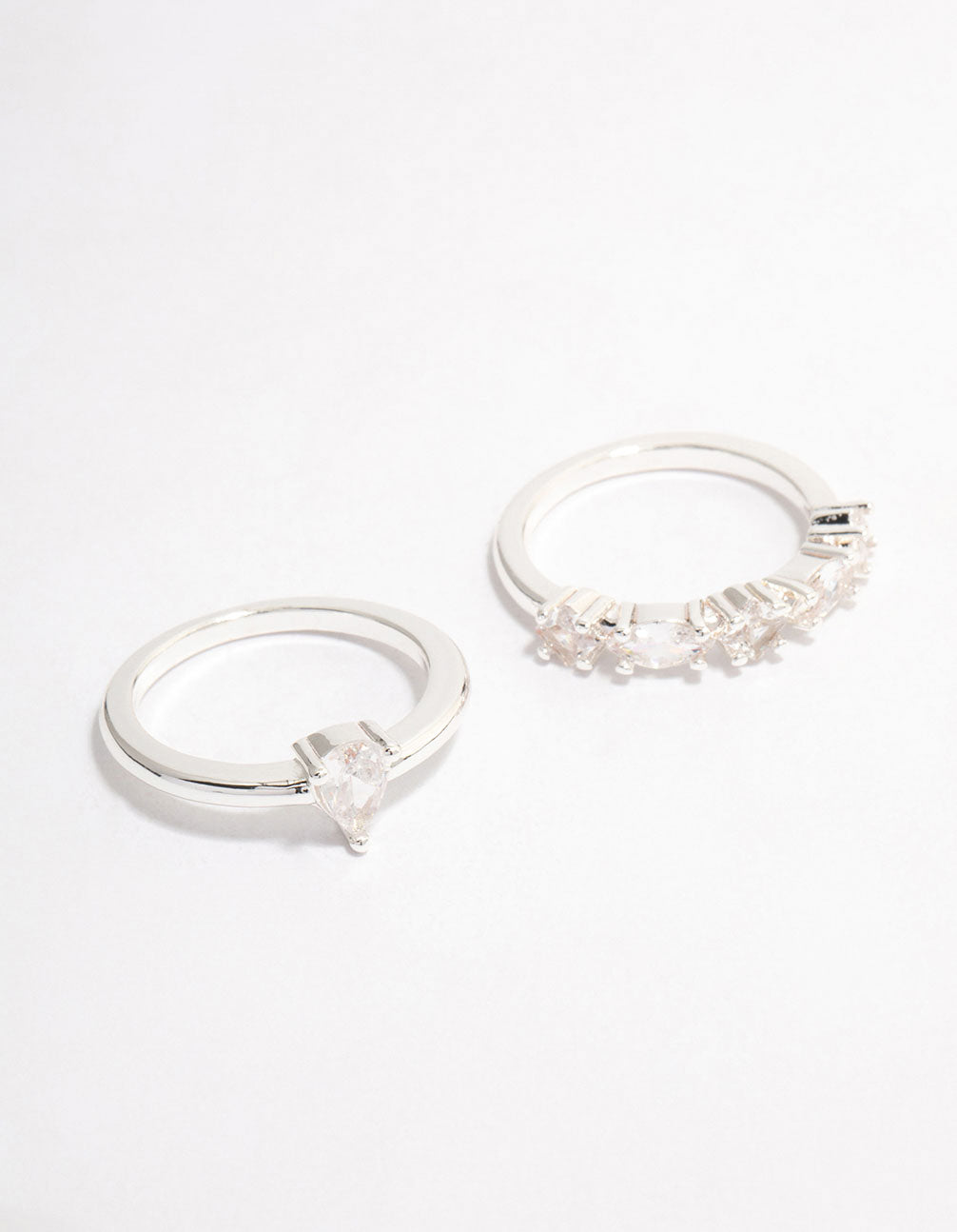 These timeless stacking rings are plated with real silver and feature an assortment of pear-shaped crystals for a touch of sparkle.