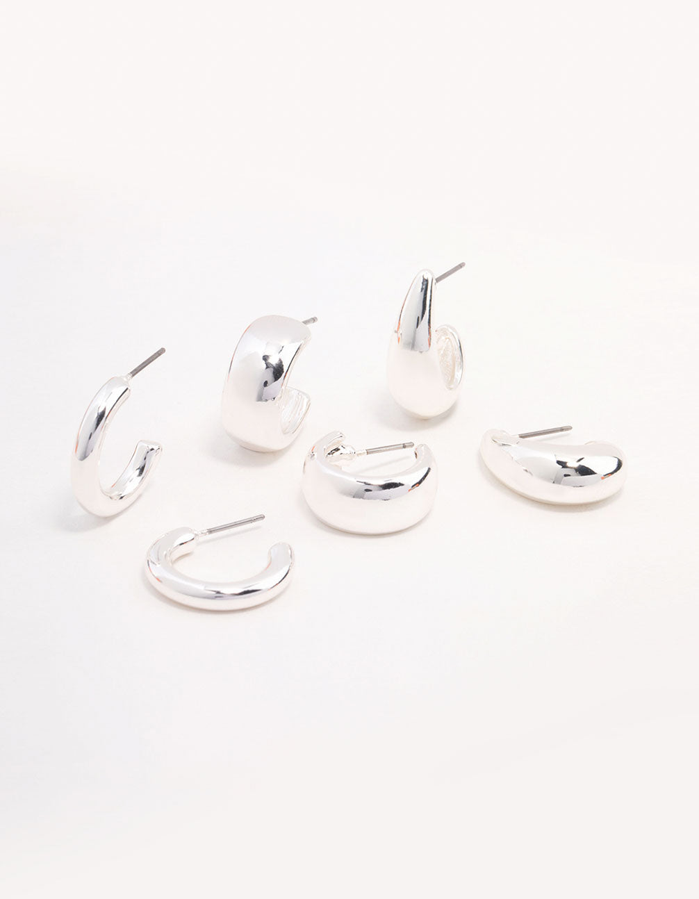 Silver Plated Chunky Hoop Earrings 3-Pack
