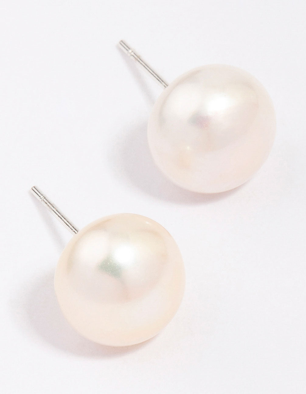 Silver Plated Classic Freshwater Pearl Stud Earrings