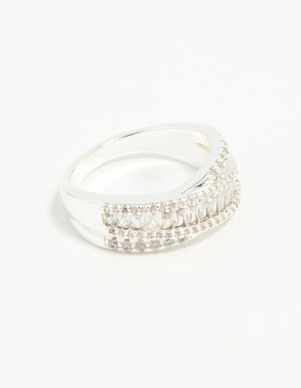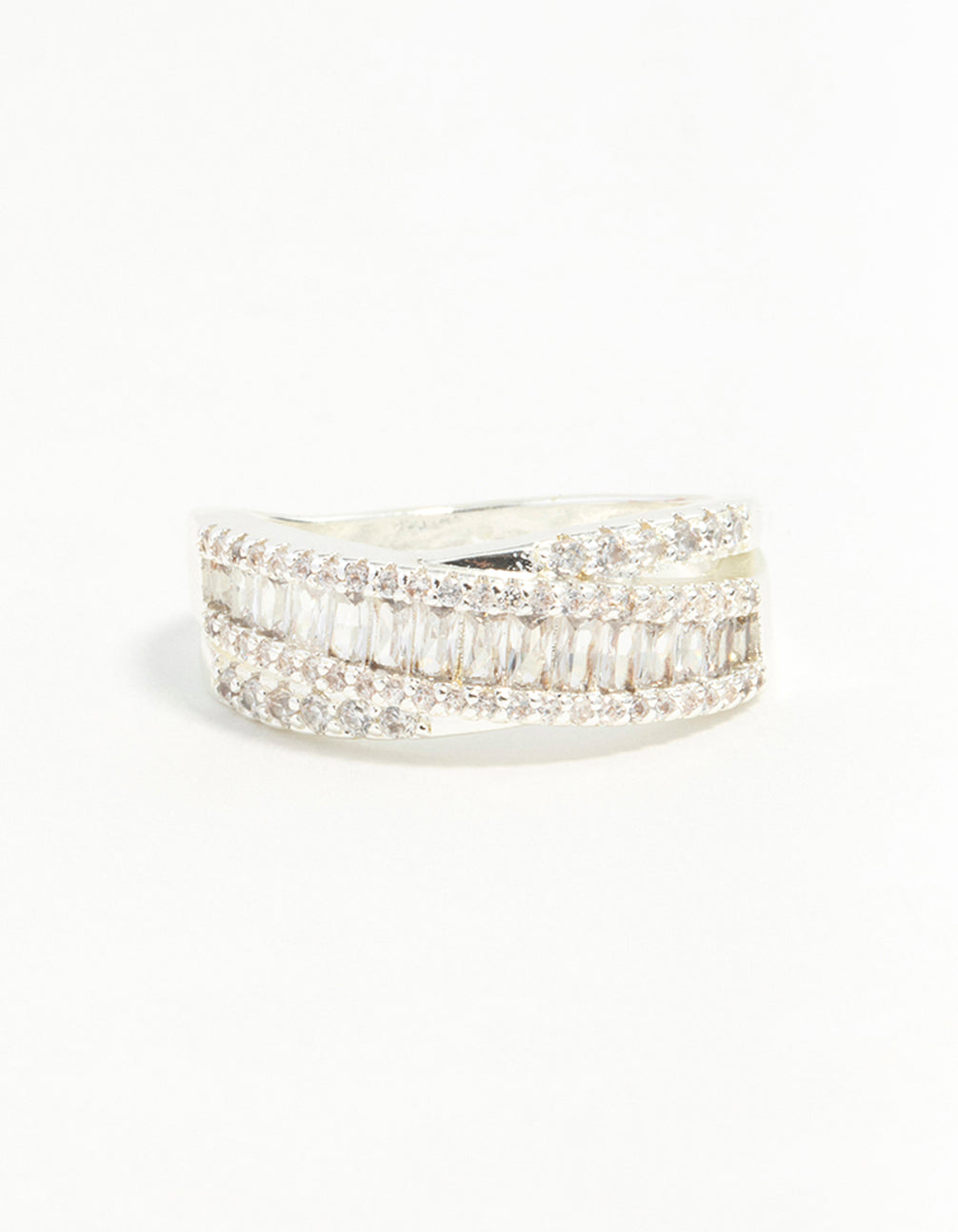 Silver Plated Cubic Zirconia Crossover Baguette Ring