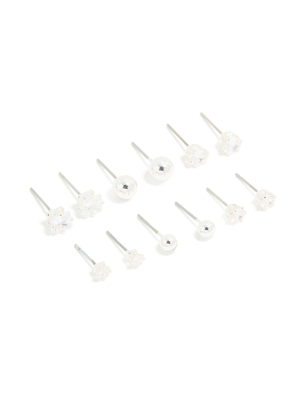 Silver Plated Cubic Zirconia & Ball Stud Earrings 6-Pack