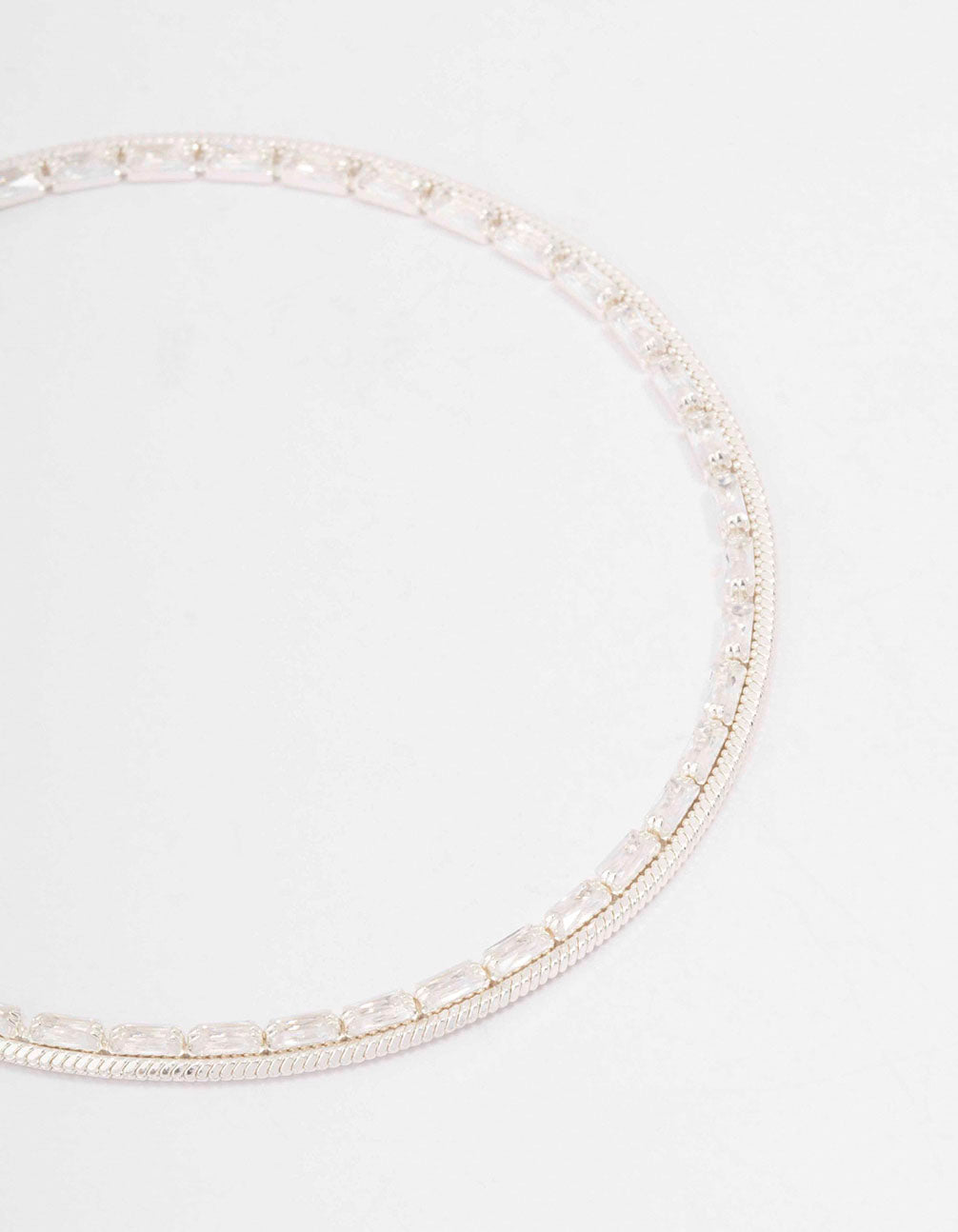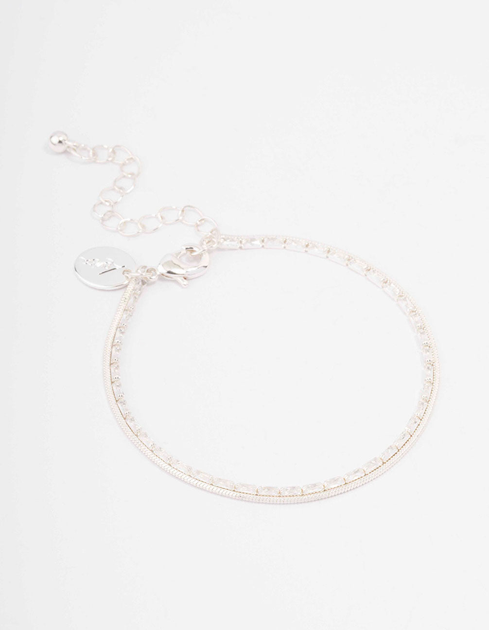 • Silver Plated Cubic Zirconia Dainty Baguette Layered Bracelet - link has visual effect only