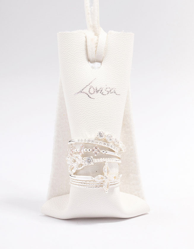 Stack your style with this Silver Plated Cubic Zirconia Mixed Leaf Ring Pack! This stunning jewellery set features delicate silver-plated bands adorned with crystal-clear cubic zirconia and intricate leaf-inspired designs. Perfect for mixing, matching, or wearing solo, these rings are an effortless way to elevate any outfit. Whether you're heading to brunch, a party, or just adding a touch of sparkle to your everyday look, these versatile silver rings are the ultimate accessory. Pair them with a flowy dress, your favourite denim, or even a sleek evening outfit for a chic, boho vibe. Elegant, playful, and oh-so-wearable, this ring pack is a must-have for any jewellery lover!