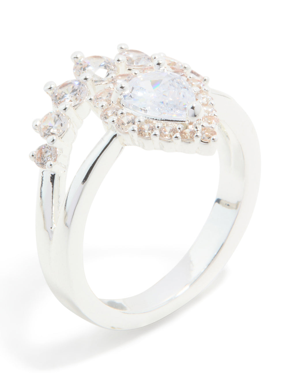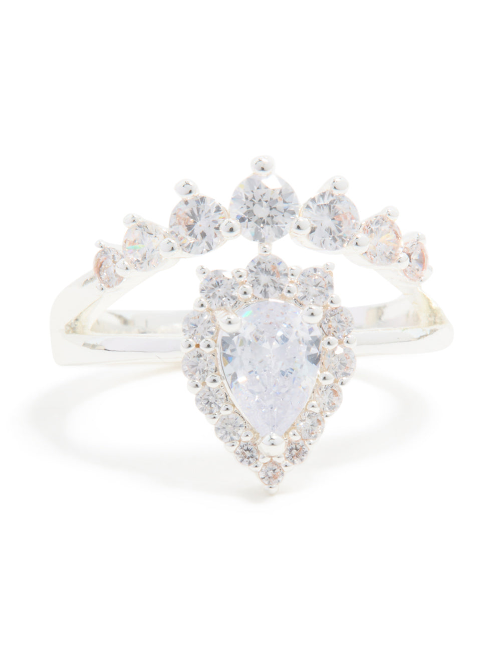 Silver Plated Cubic Zirconia Pear & Crown Layered Ring