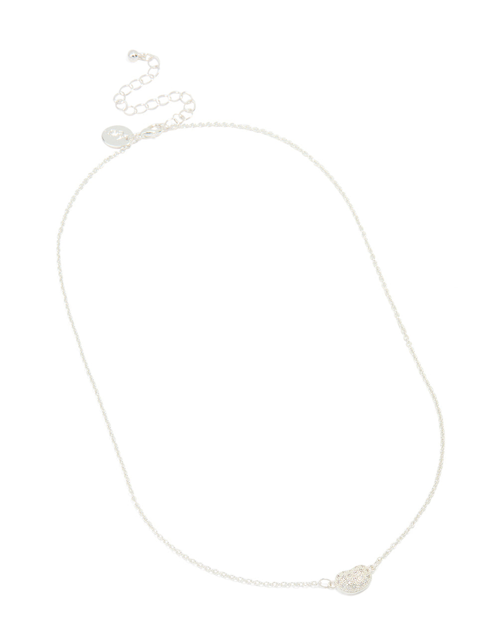 Silver Plated Cubic Zirconia Small Pebble Pendant Necklace