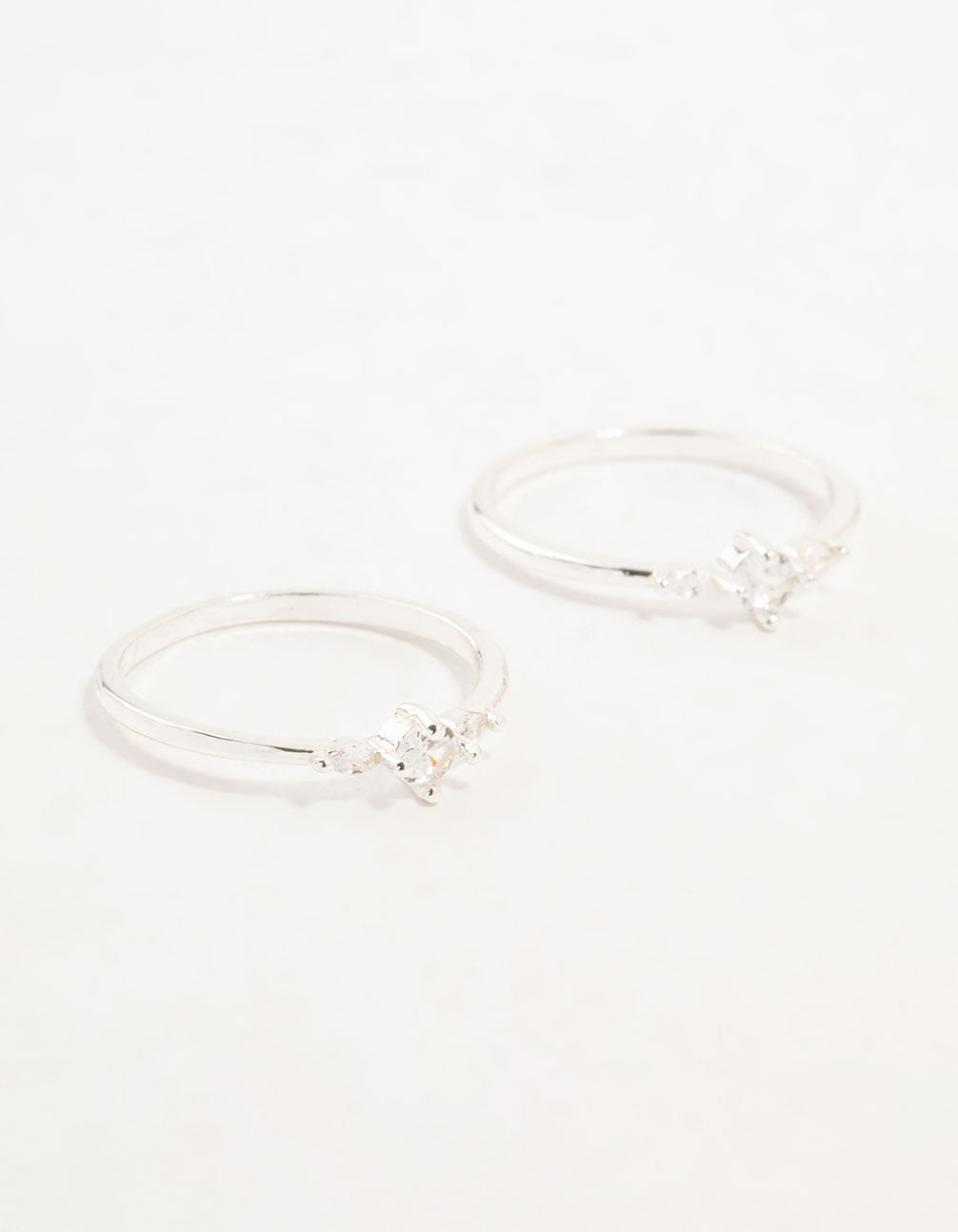 Stack up in style with this silver-plated ring duo! Featuring cubic zirconia crystals, these rings add a perfect hint of glam.