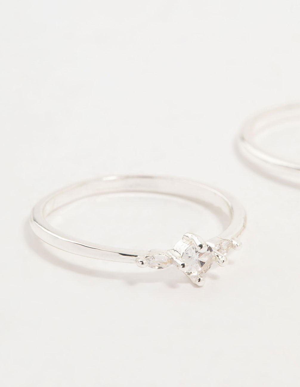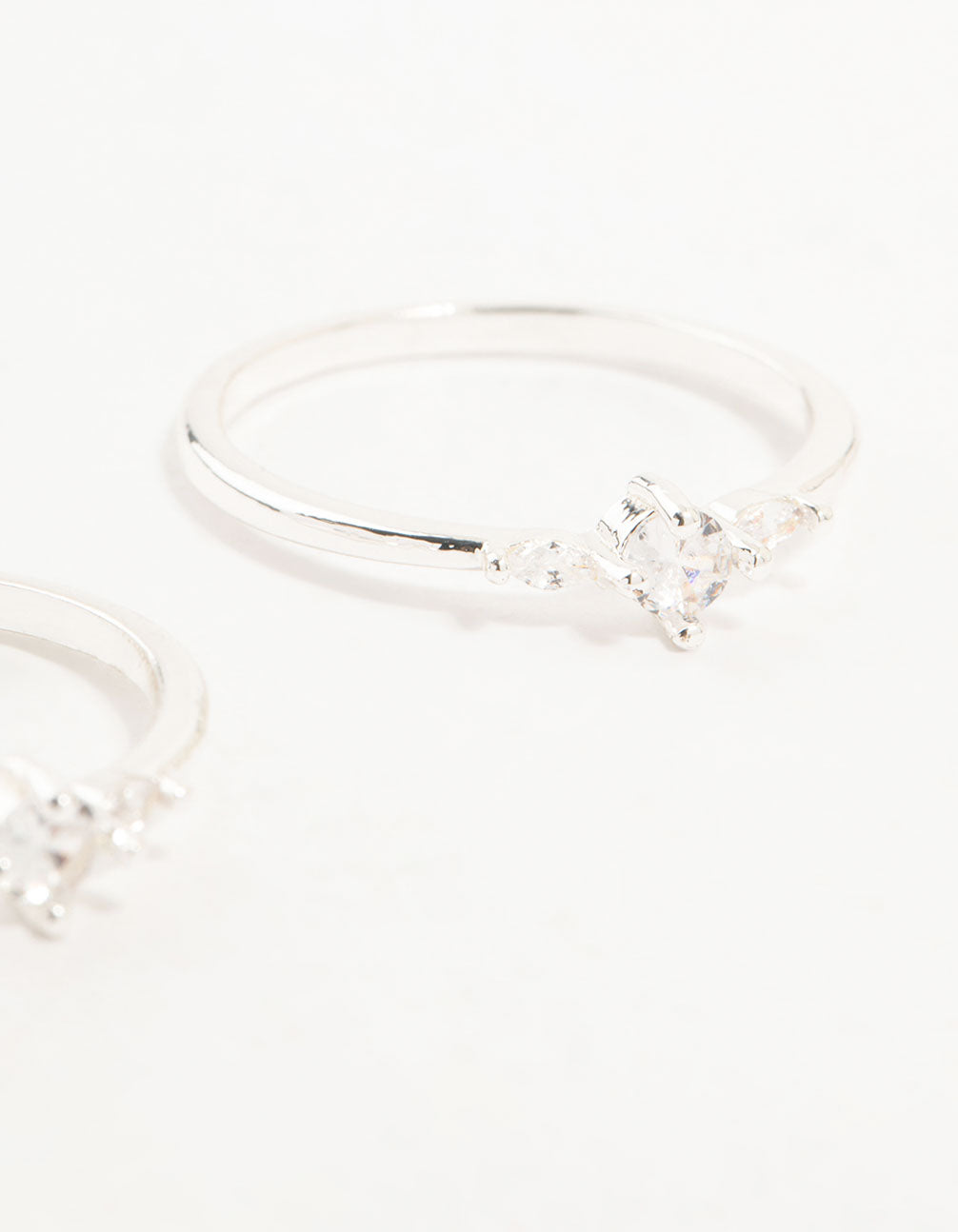 Silver Plated Dainty Cubic Zirconia Stacking Rings 2-Pack