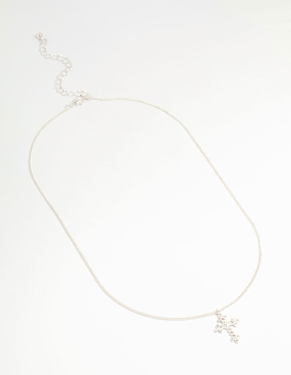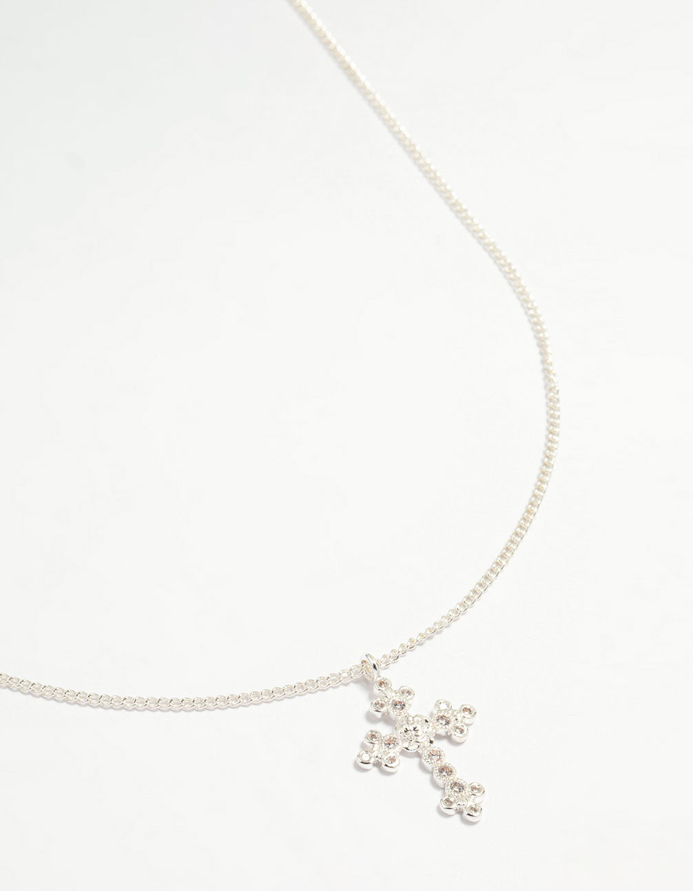 Silver Plated Diamante Rose Cross Pendant Necklace