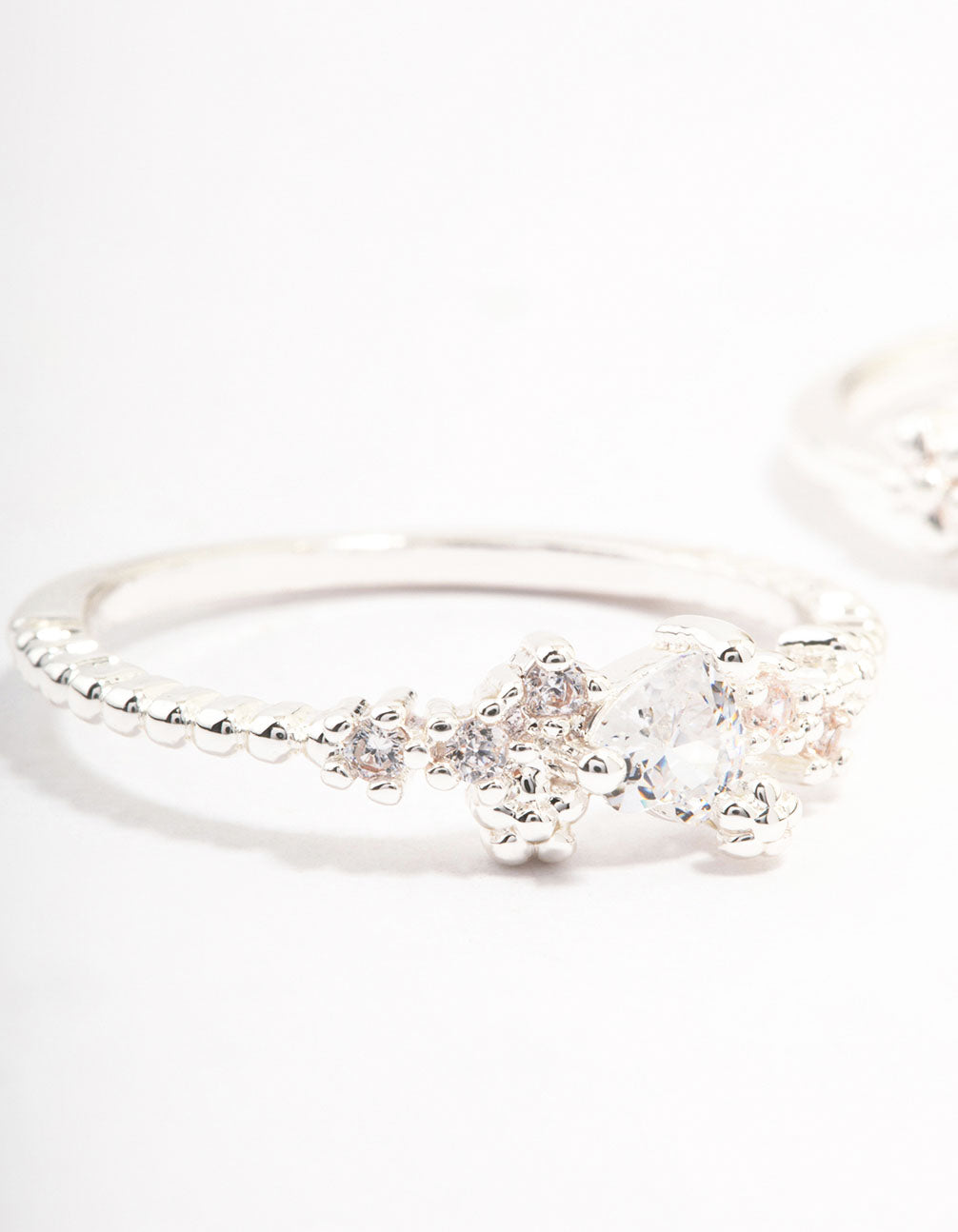 Silver Plated Floral Stone Stacking Rings