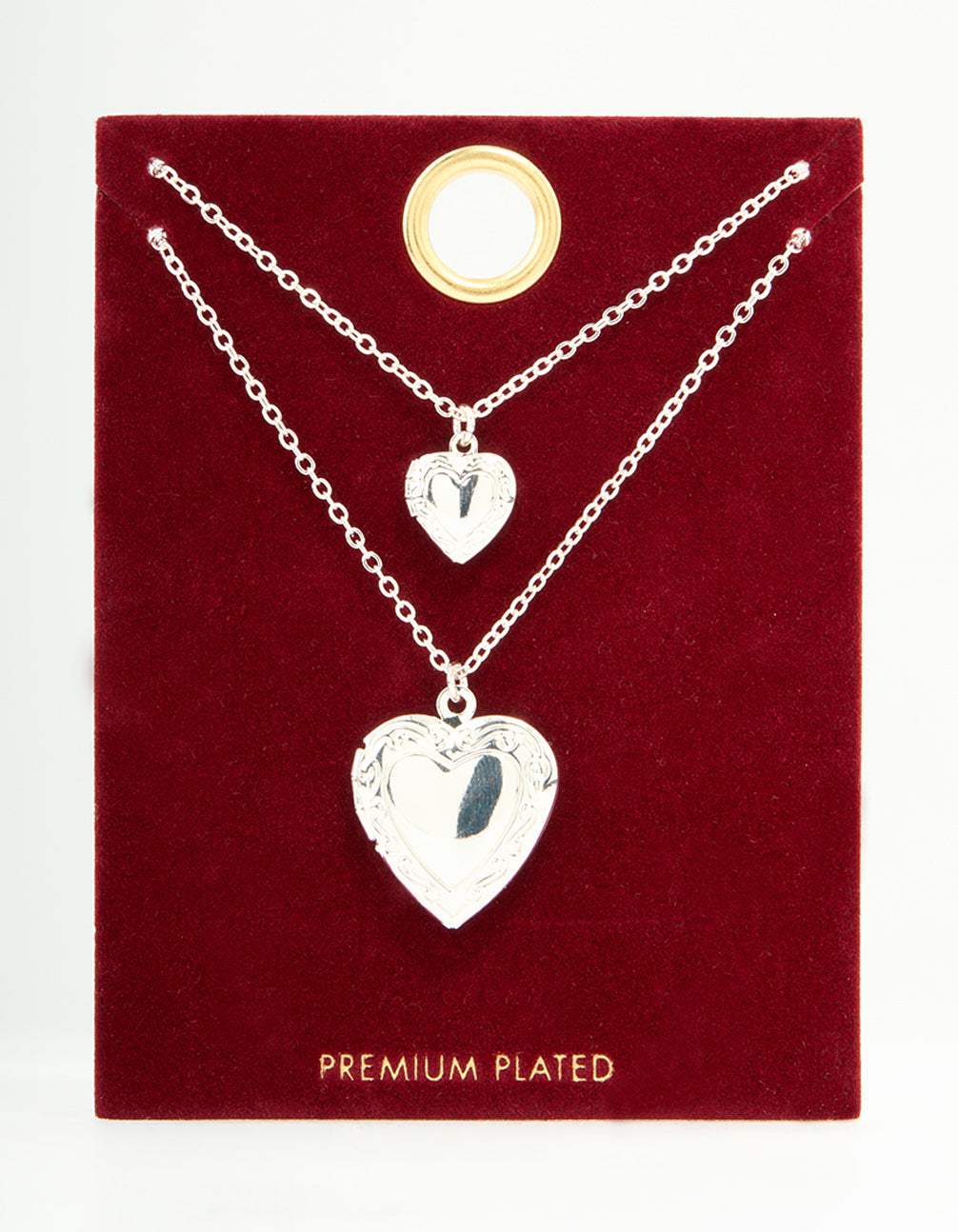 Silver Plated Heart Pendant Necklaces 2-Pack