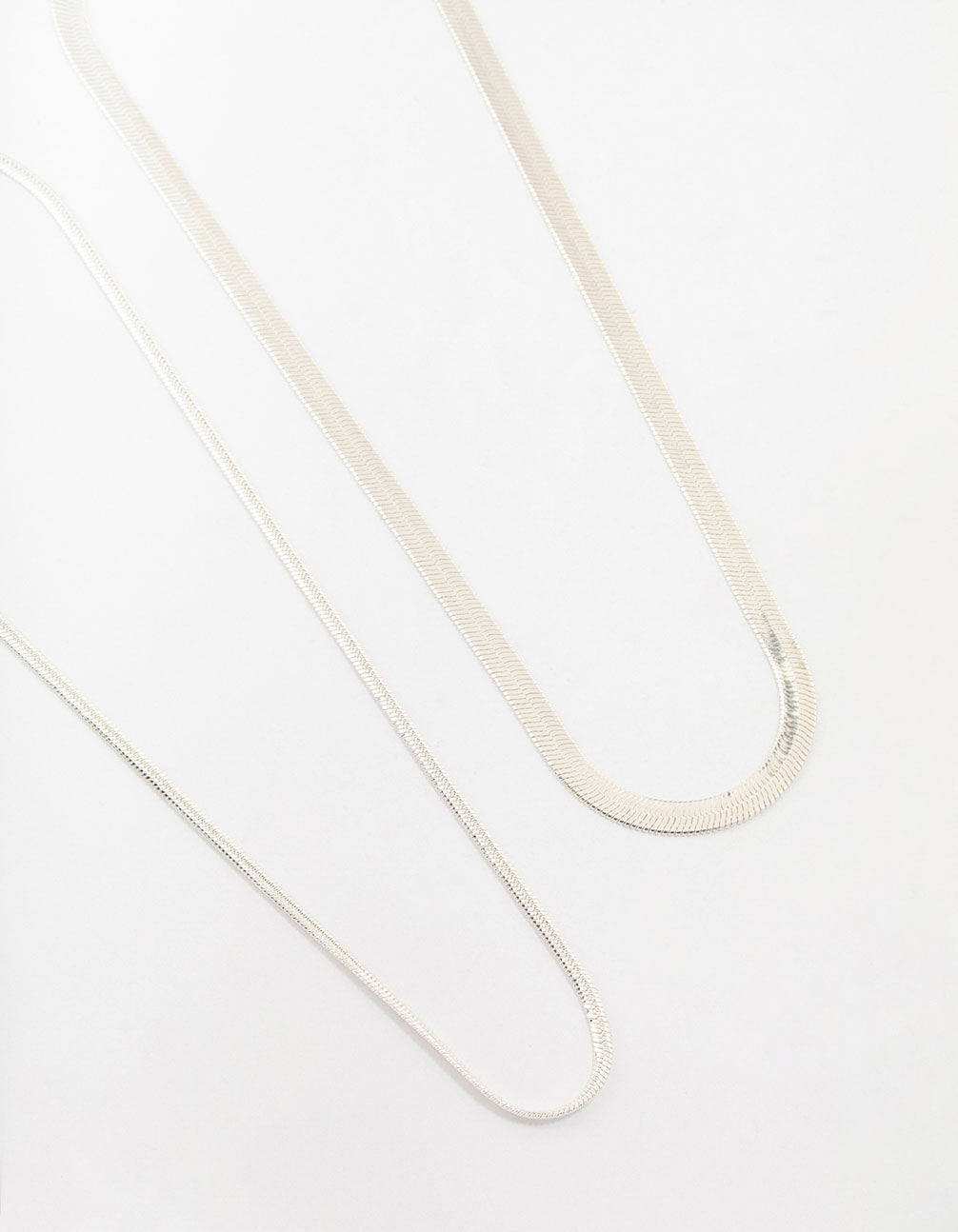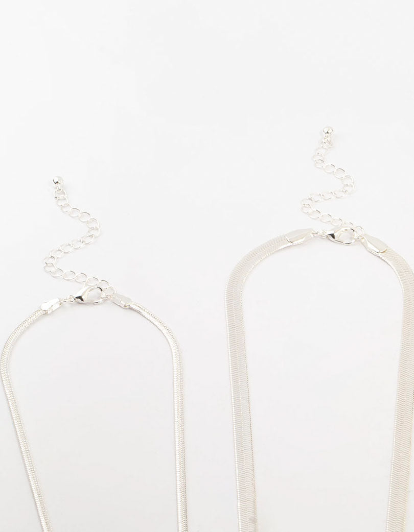 Silver Plated Herringbone Chain Necklaces 2-Pack