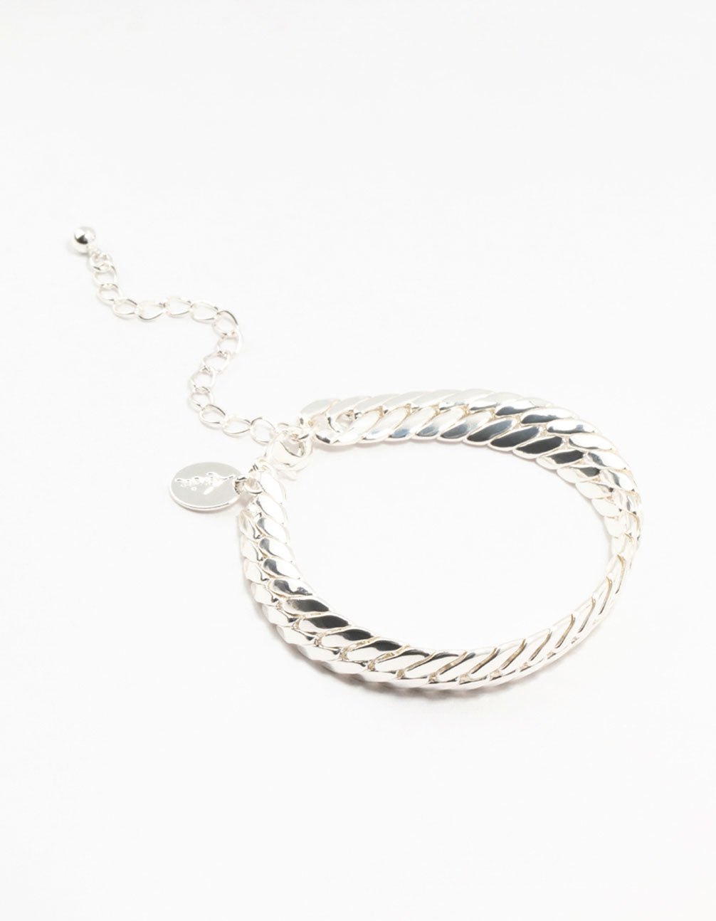 Up your accessory game with this Silver Plated Brass Herringbone T&O bracelet. This bracelet features a captivating herringbone pattern and trending silver tones for the perfect finishing touch to effortlessly elevate your style.