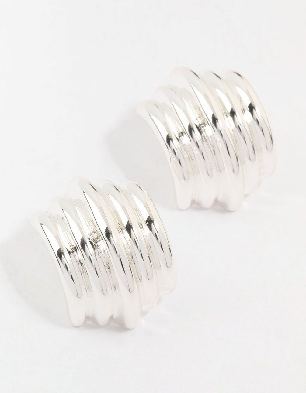 Elevate your look with these shimmering silver-plated stud earrings. The ribbed texture adds modern edge to the classic hoop silhouette, offering a versatile, wear-anywhere vibe in a medium size.