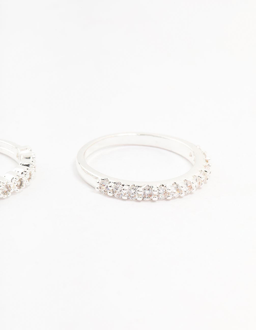 Amp up your look with this captivating trio of stacking rings, shimmering in silver-plated cubic zirconia. Stack for elegance or wear solo for a chic minimalist vibe, transitioning seamlessly from day to night.
