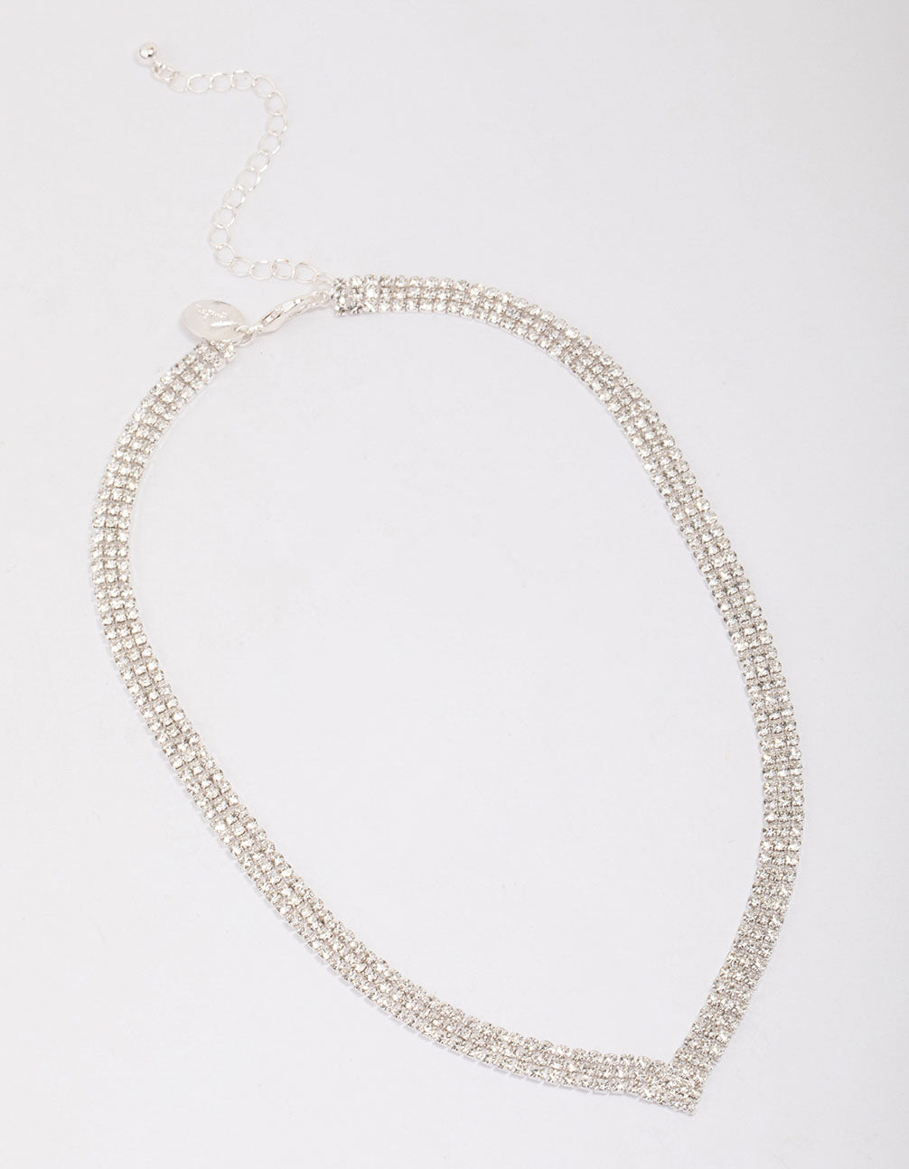 Elevate your outfit with this stunning, silver plated necklace. This chain necklace features a V-shaped silhouette, adorned with cubic zirconia crystals for a glamorous finish. Perfect for styling to events or special occasions!