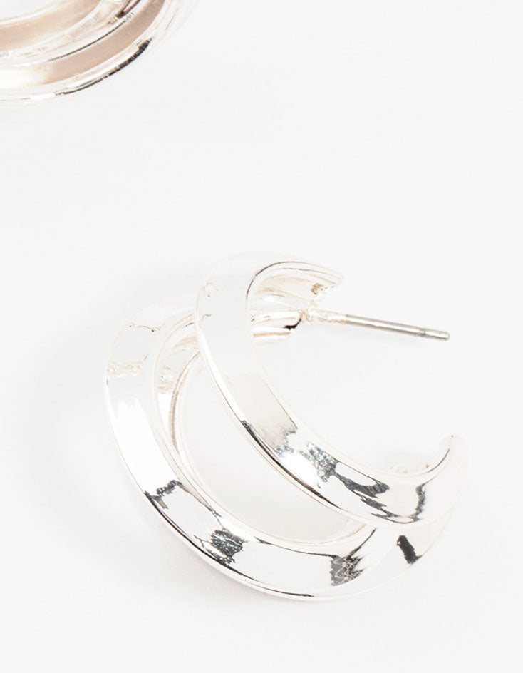 Upgrade your everyday look with these effortlessly cool silver hoops. These hoops include a playful 3 hoop layered design for added dimension and visual interest. Rock these for a clean polished look.