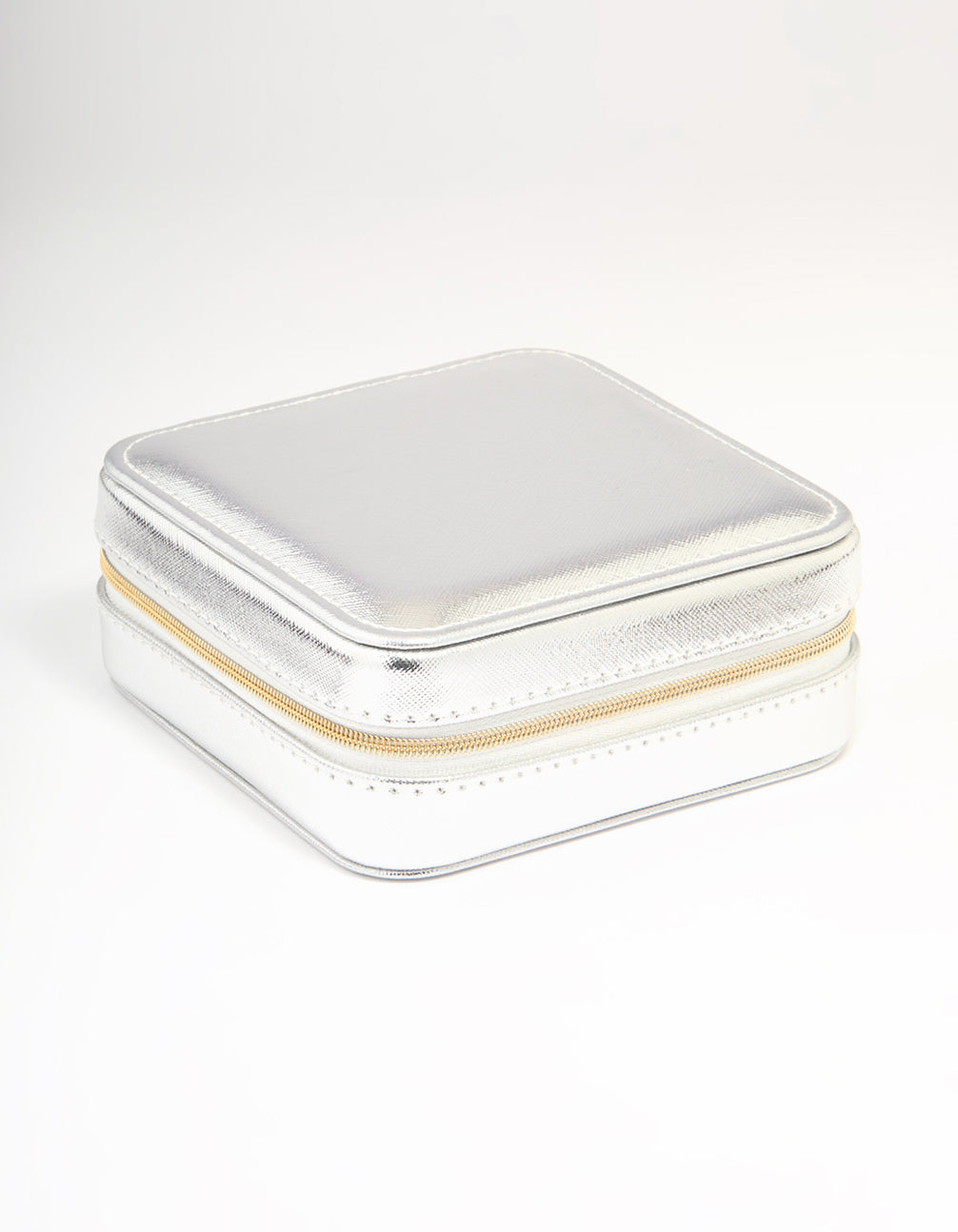 Keep your treasures safe and stylish with this Silver PU Leather Large Square Jewellery Case. This chic jewellery case is perfect for organising your rings, necklaces, bracelets, and earrings. Crafted with a sleek silver PU leather finish, it's as elegant as the pieces it protects. Its large square shape makes it ideal for your dressing table or to pop in your suitcase for travel. Whether you're storing your everyday essentials or your most dazzling accessories, this jewellery case is the ultimate mix of practicality and style. Perfect for anyone who loves keeping their jewellery organised while adding a touch of luxe to their storage game!