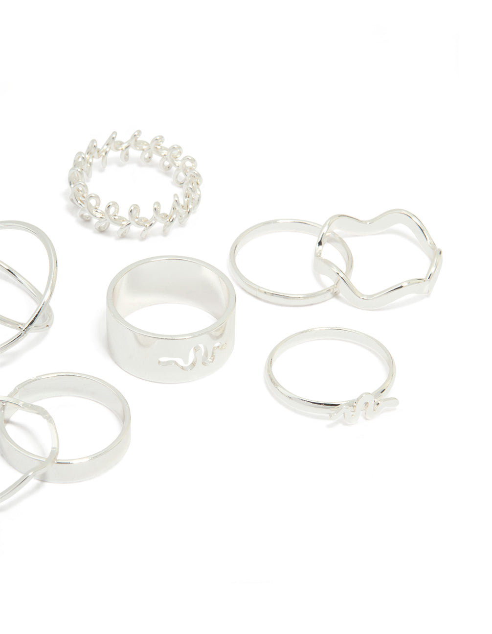 Silver Snake& Wavy Rings 8-Pack