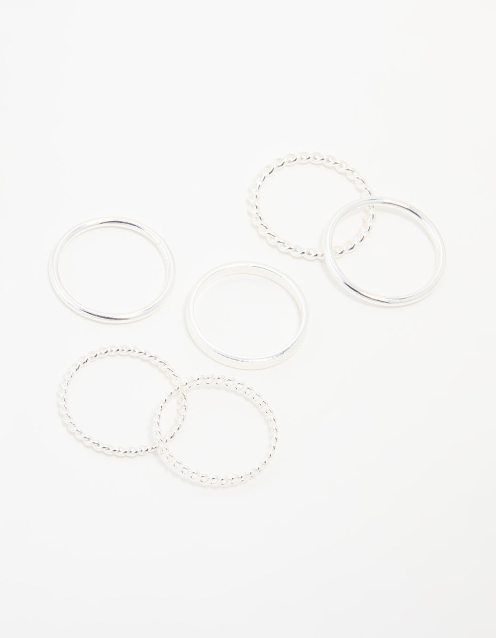 Silver Thin Twisted Stacking Rings 6-Pack