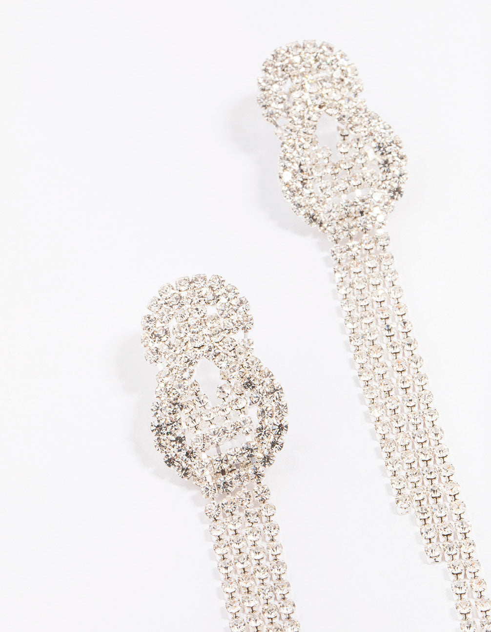 Channel Old-Hollywood glamour with these stunning silver-toned drop earrings. These unique statement earrings feature a twisted cup chain, encrusted with sparkling diamantes for an eye-catching finish.