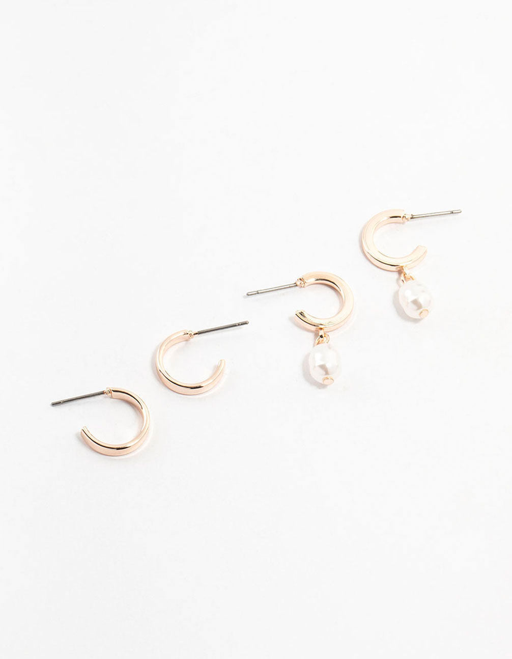 Simple Pearl Rose Gold Huggie Earrings 2-Pack