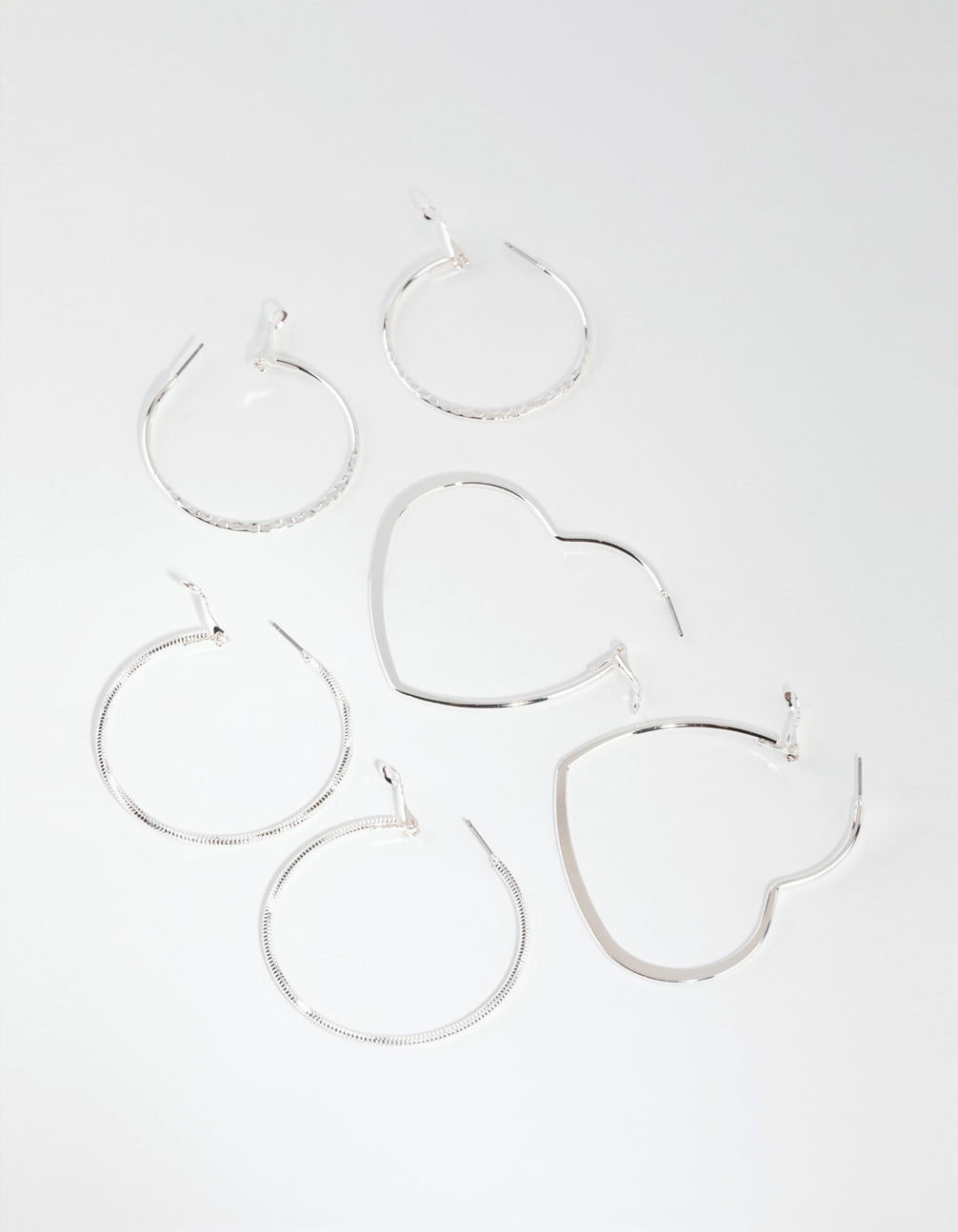 Silver Heart & Textured Earrings Silver Heart & Textured Earrings Silver Heart & Textured Earrings