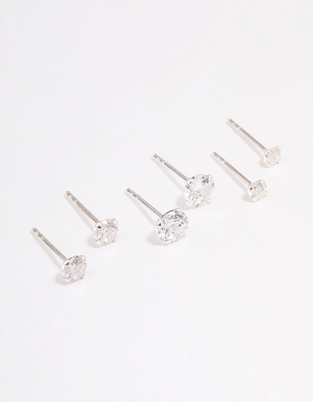 Sterling Silver Graduating Cubic Zirconia Earring 3-Pack
