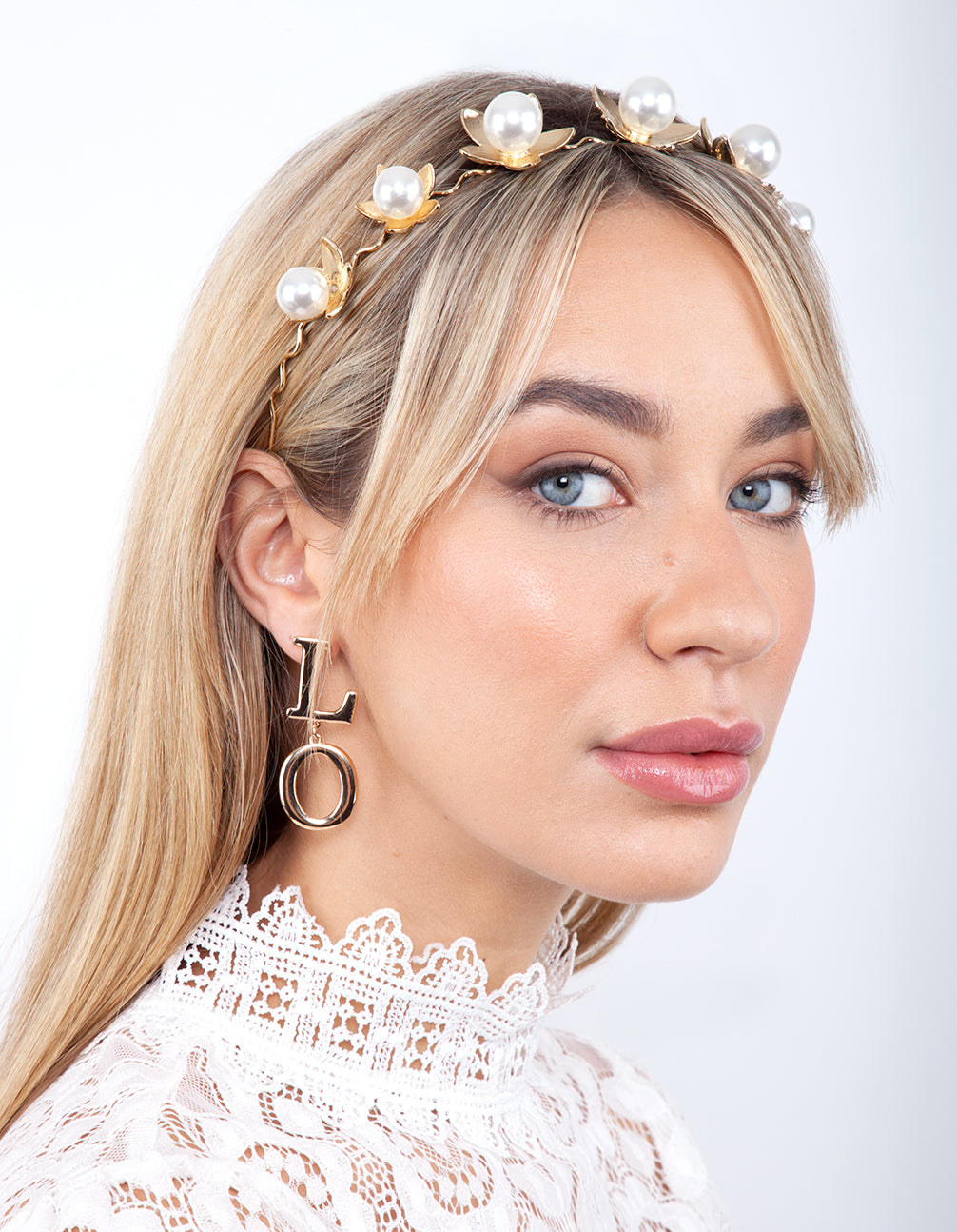 Whether you are heading to brunch, a wedding or just wanting to look glamorous for a party, hair accessories are the perfect way to complete your ensemble! This gold-toned headband features a faux pearl flower design. This headband is such a versatile and fashion forward hair accessory - a must-have!