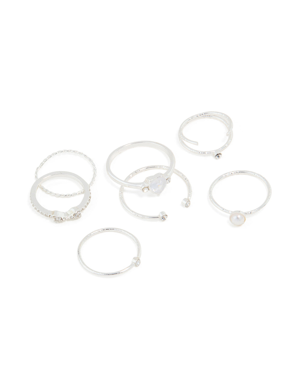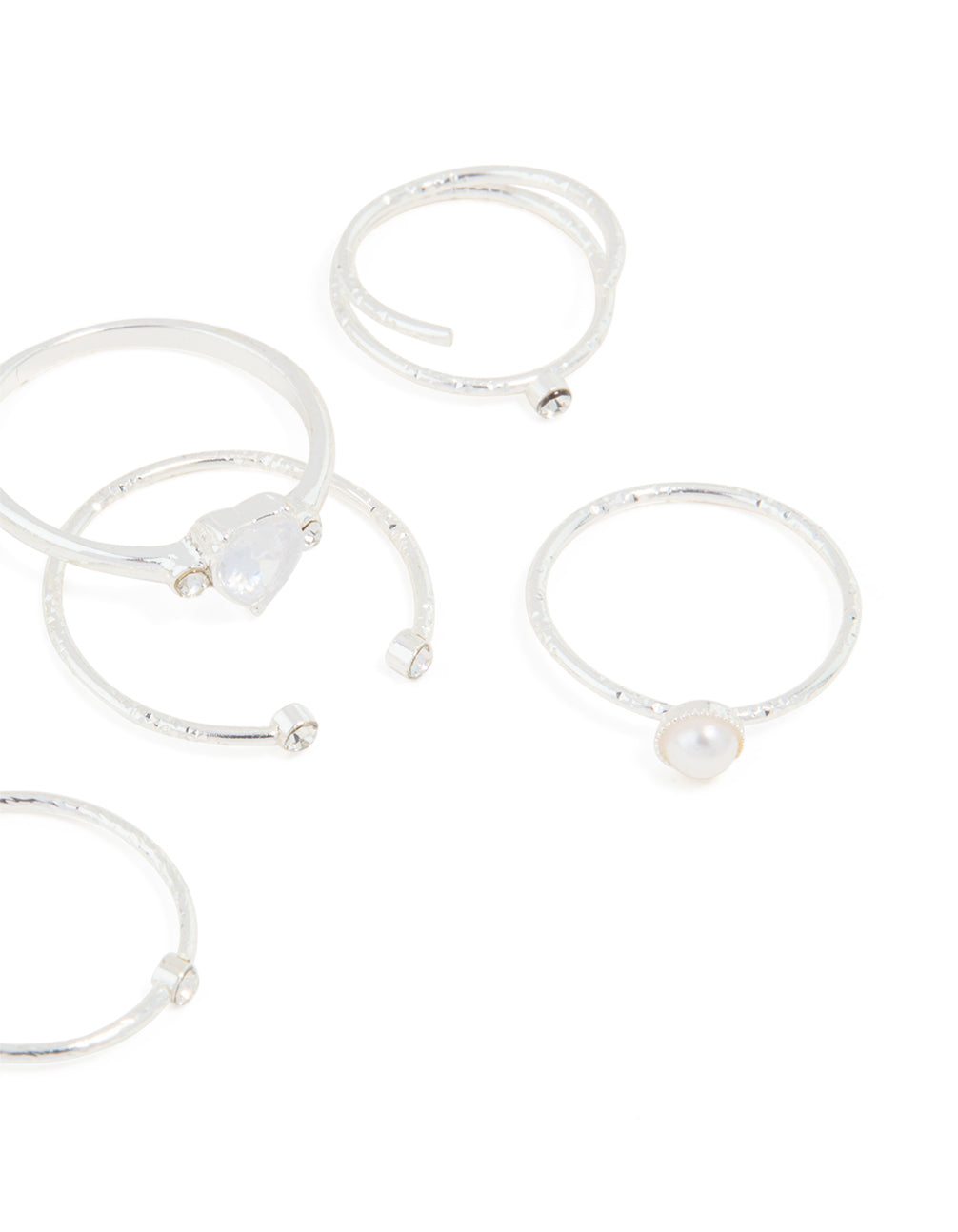 Silver Dainty Diamante & Pearl Ring Pack