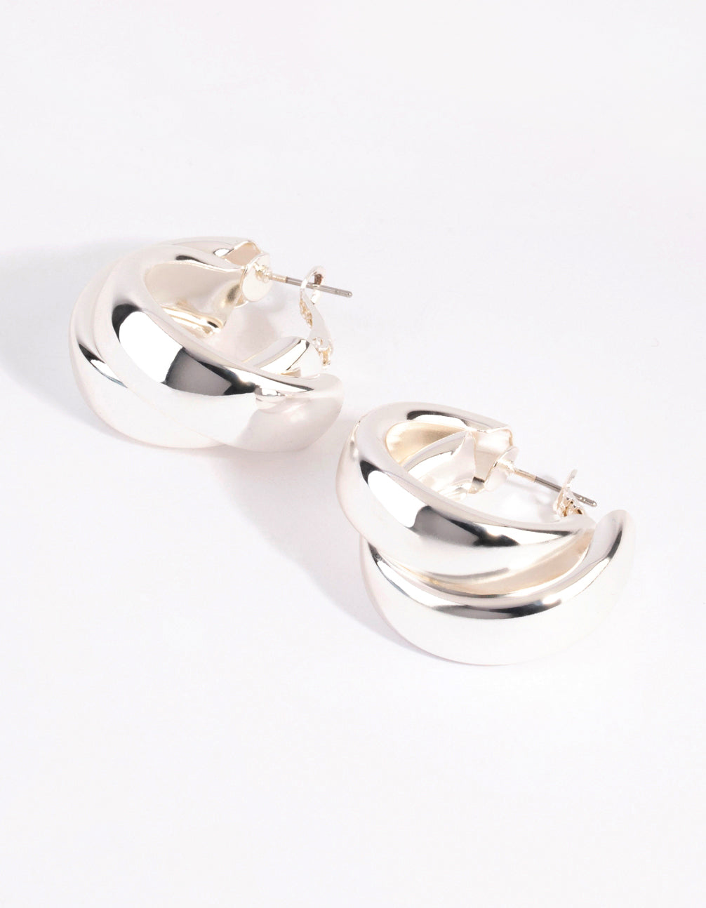 Almost any outfit can be improved with a pair of hoop earrings! These lovely hoops are silver toned with a layered design to inspire intrigue.