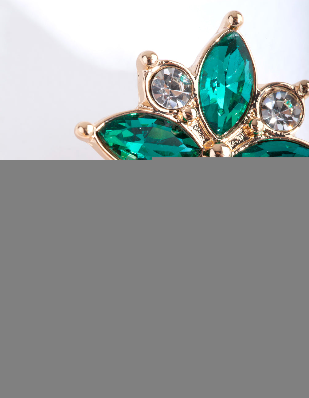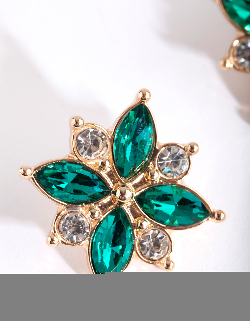 Go from day to night with a pair of fashion earrings! These stud earrings boast a butterfly flower design with green stone details in a gold-tone setting.