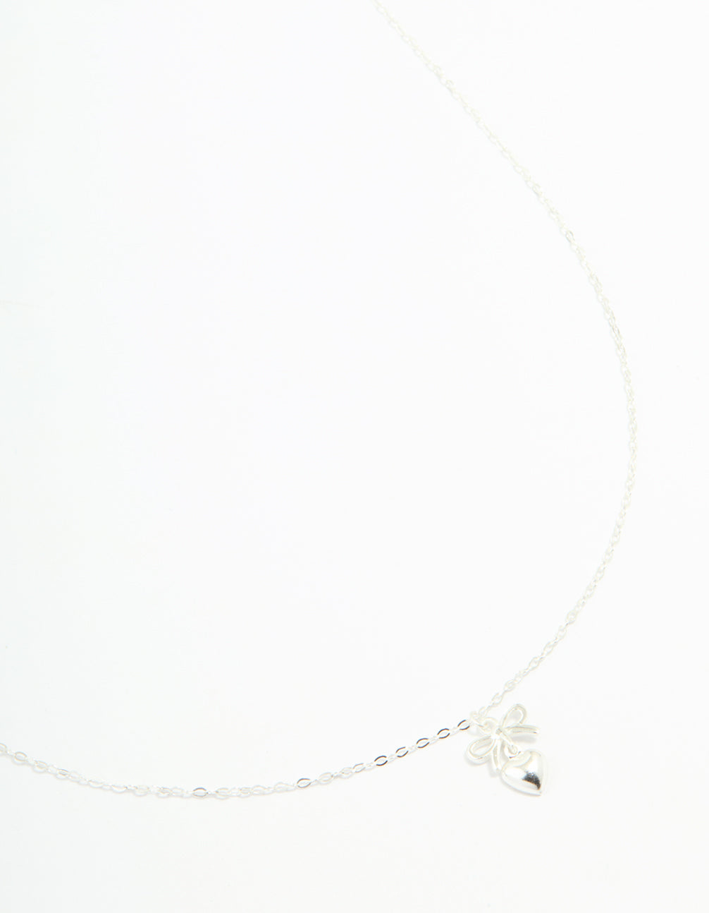 Add a touch of charm to your jewellery collection with this Sterling Silver Bow & Heart Drop Necklace. Crafted from sterling silver, this elegant necklace features a playful bow design paired with a delicate heart drop detail. Perfect for dressing up casual looks or complementing formal attire, it's versatile enough for everyday wear or special occasions. Pair it with a chic blouse or a little black dress for effortless style, or gift it to someone special for a thoughtful gesture they'll treasure. Whether you're heading to brunch with friends or a romantic evening out, this necklace is sure to be your go-to accessory. Stylish, timeless, and oh-so-versatile—what's not to love?