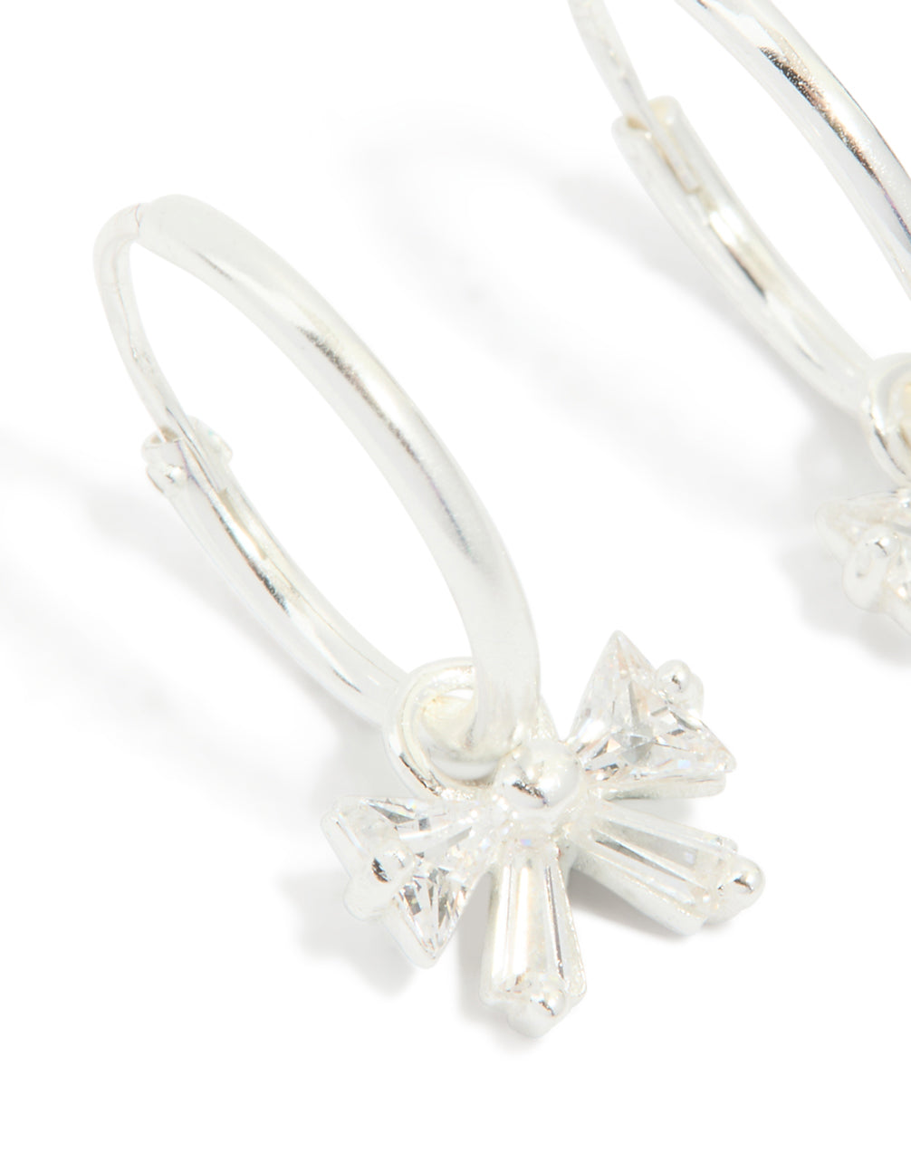 Sterling Silver Cubic Zirconia Bow Charm Huggie Earrings