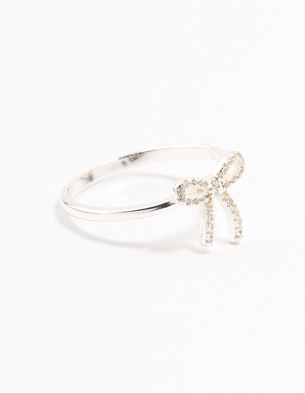 Elevate your signature style with stunning sterling silver pieces. This flirty bow motif ring, adorned with cubic zirconia crystals, crafted from genuine 925 sterling silver, ensures durability and chic sophistication.