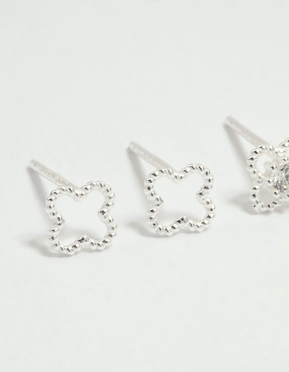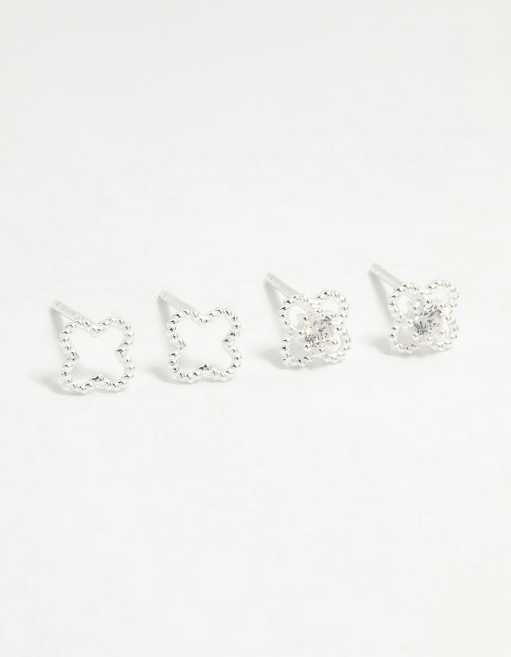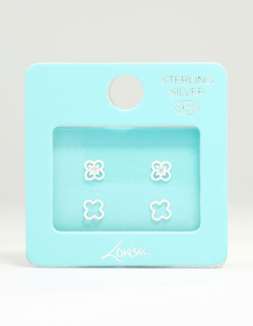 Sterling Silver Cubic Zirconia Flower Stud Earrings 2-Pack
