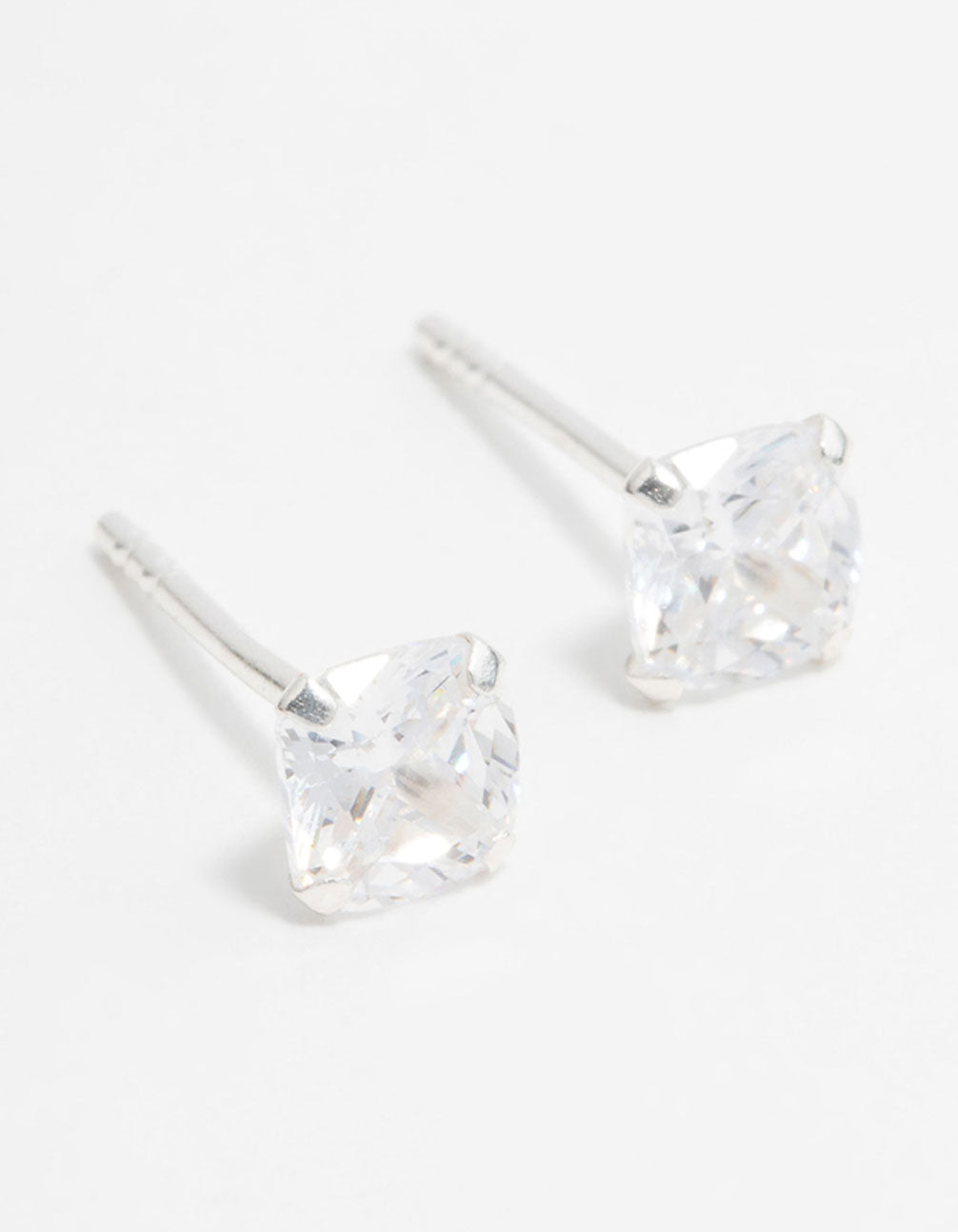Sterling Silver Cubic Zirconia Cushion Cut Stud Earrings