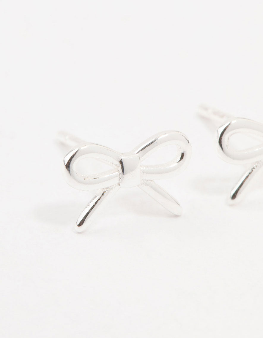 Inject some preppy chic into your style with these adorable bow stud earrings. Featuring a cut-out bow design and a durable sterling silver base, they're perfect for a minimalistic, coquette-inspired touch.