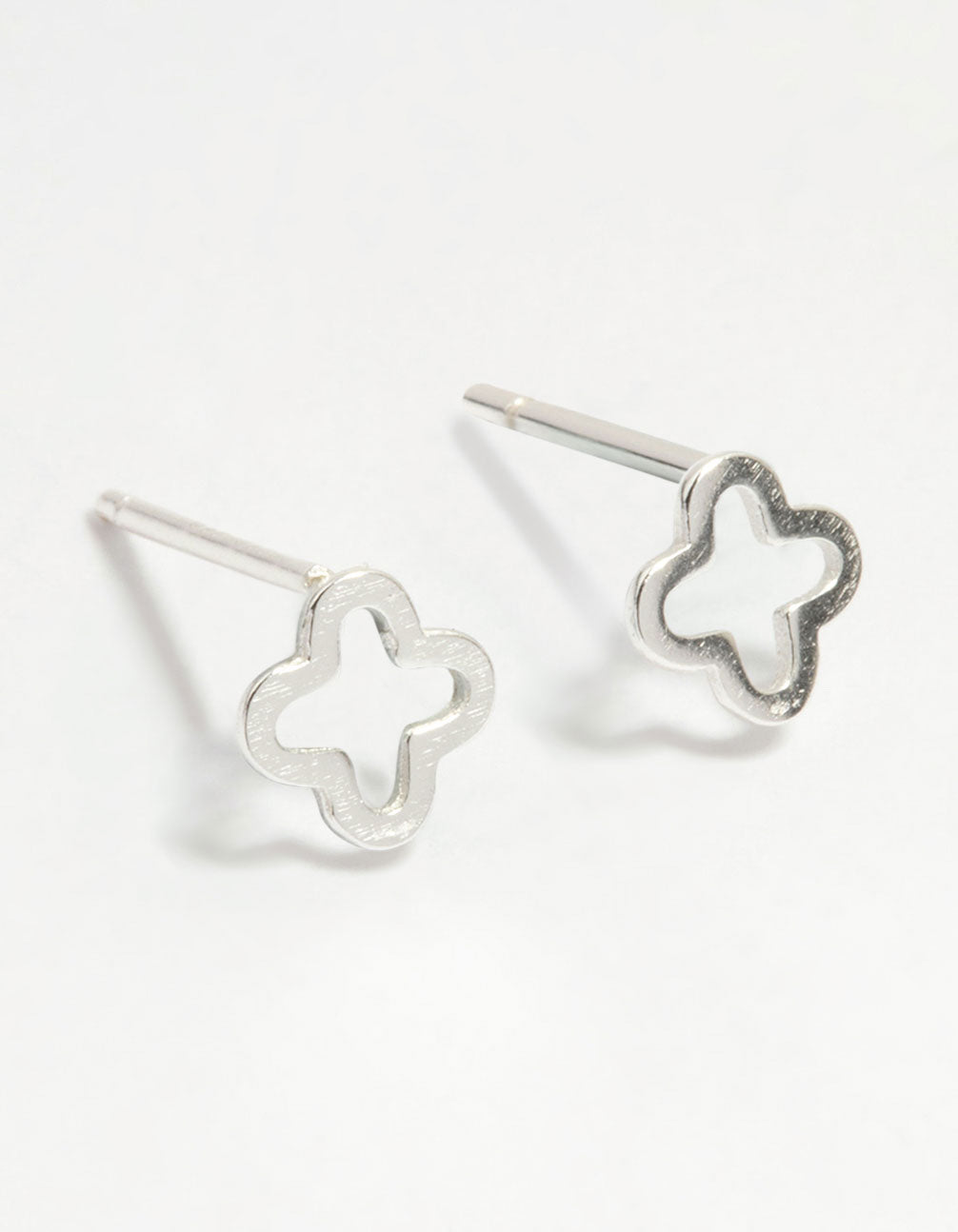 Blossom with these Sterling Silver Flower Outline Stud Earrings! These sterling silver flower earrings add a touch of elegance and whimsy to any outfit. Perfect for a casual brunch or a special occasion.